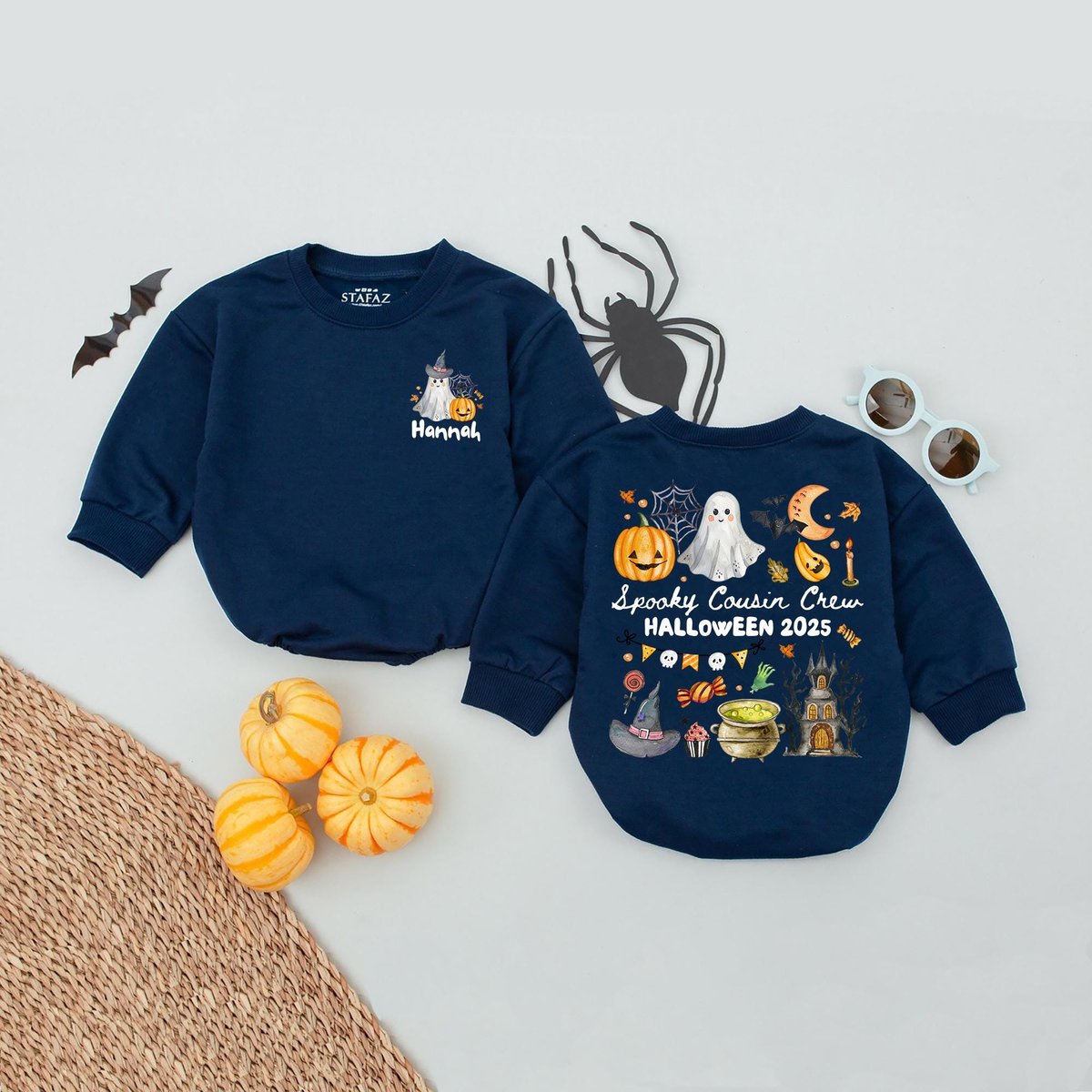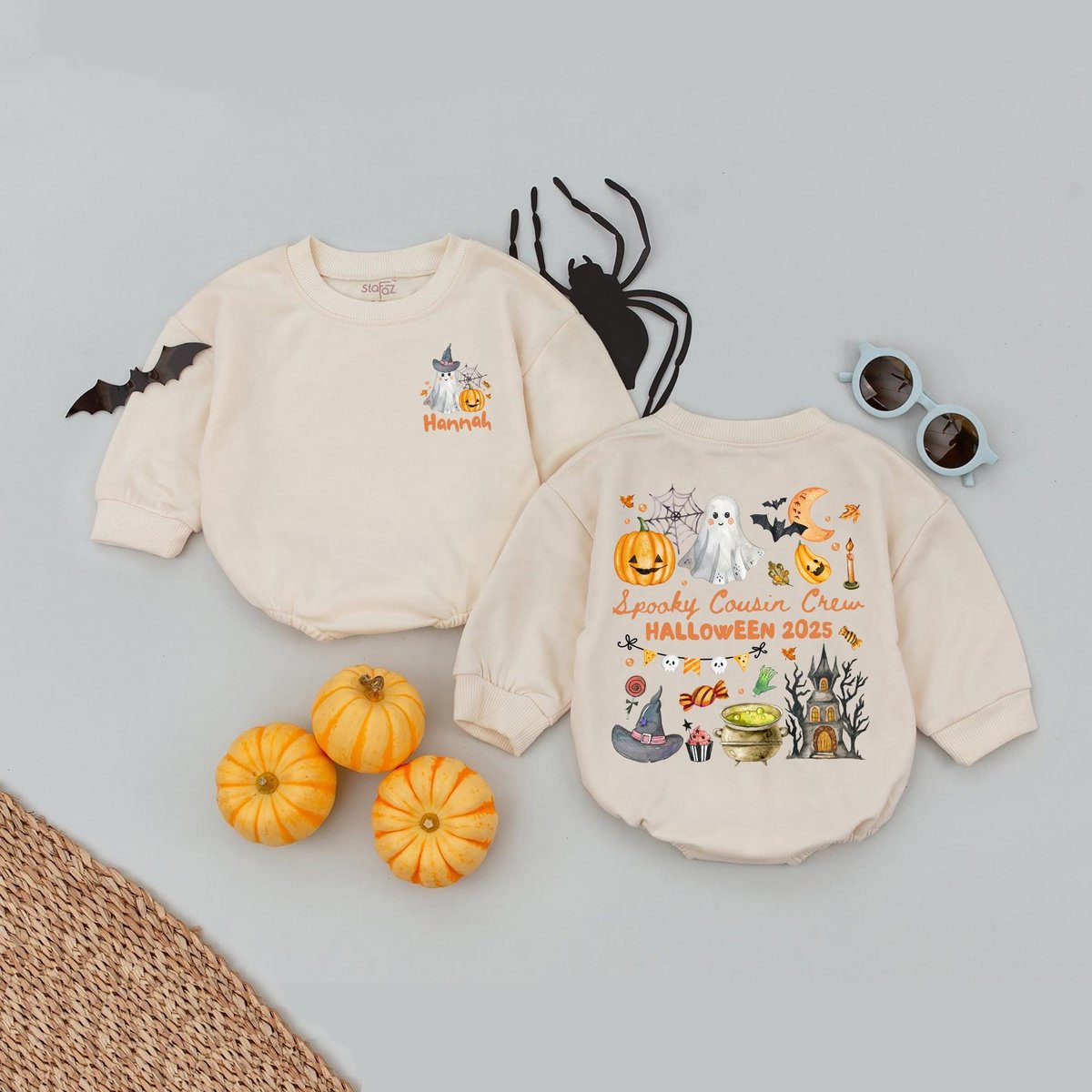 Custom Name Cousin Crew Halloween Bubble Romper Kids Halloween Matching Group Baby Romper Cousins Si