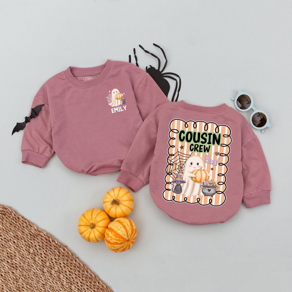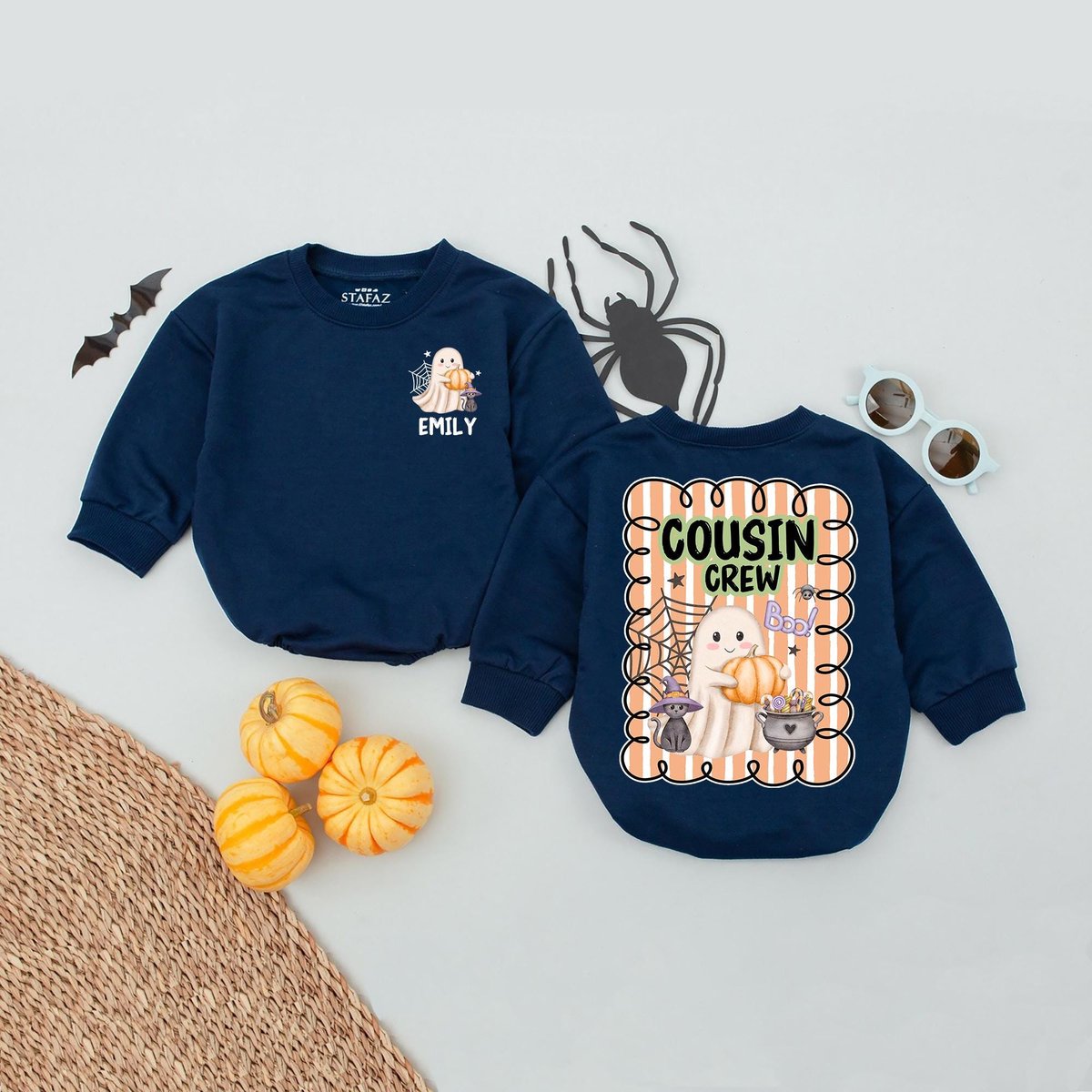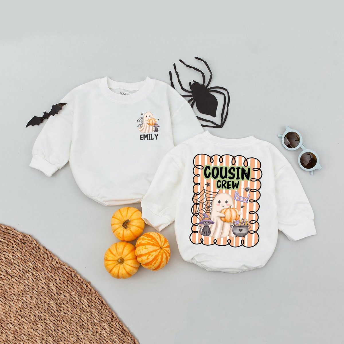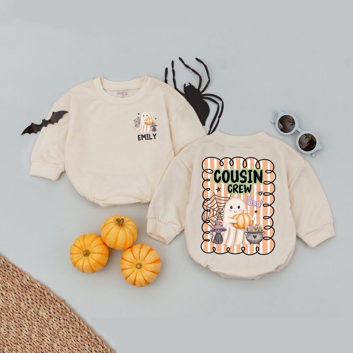 Custom Name Cousin Crew Halloween Bubble Romper Kids Halloween Matching Group Baby Romper Matching C