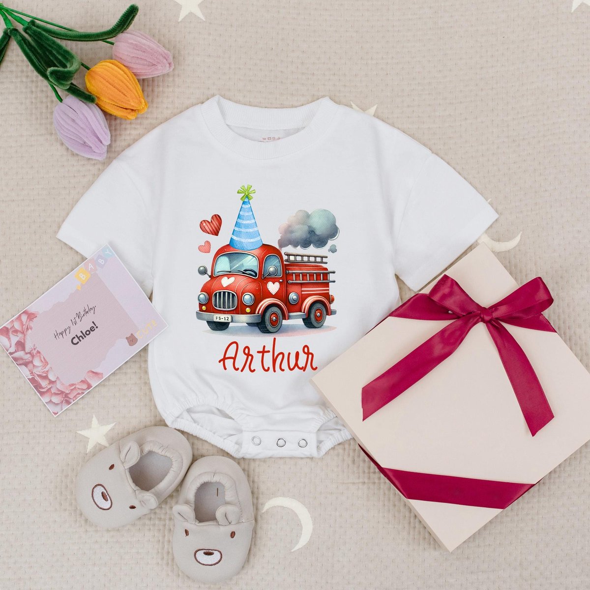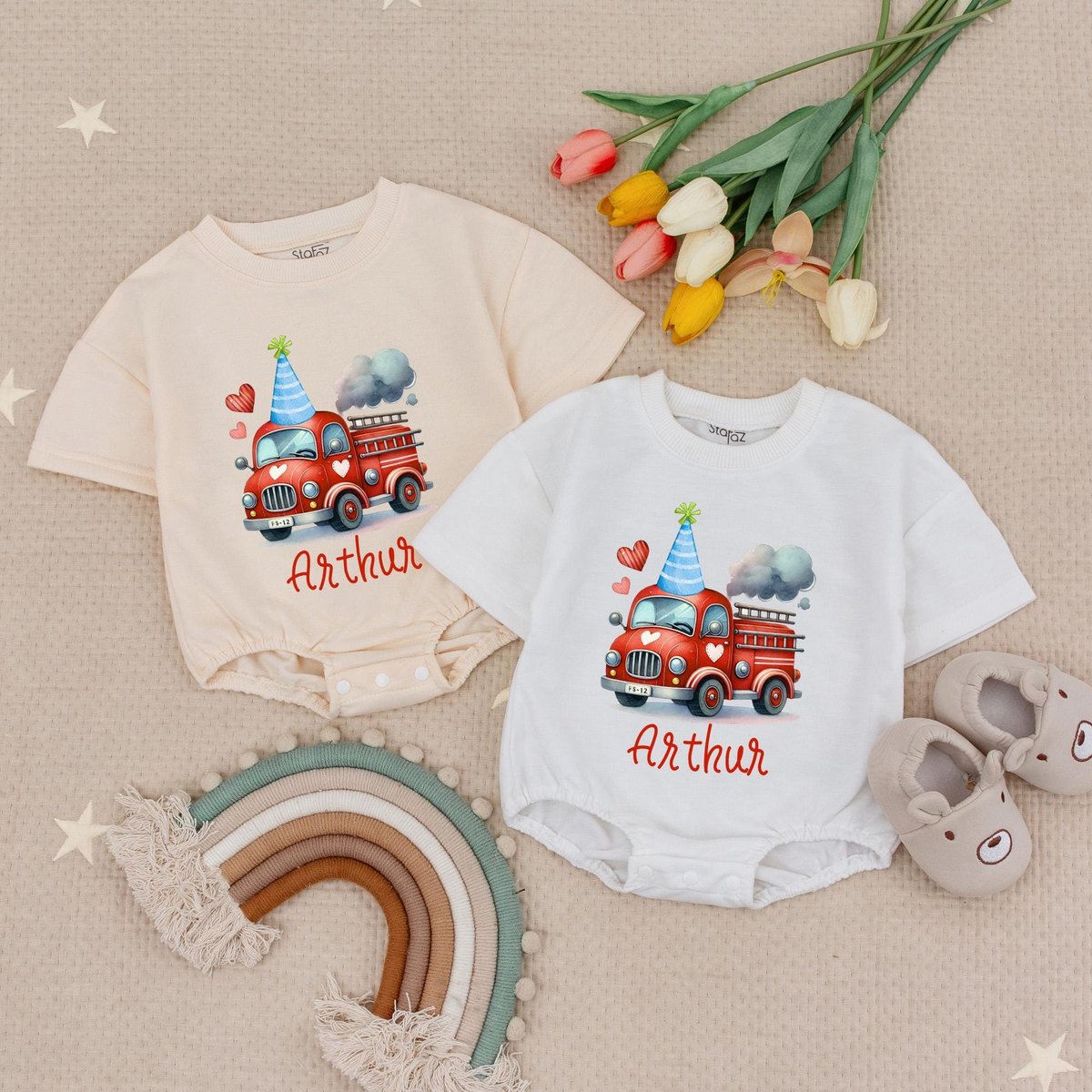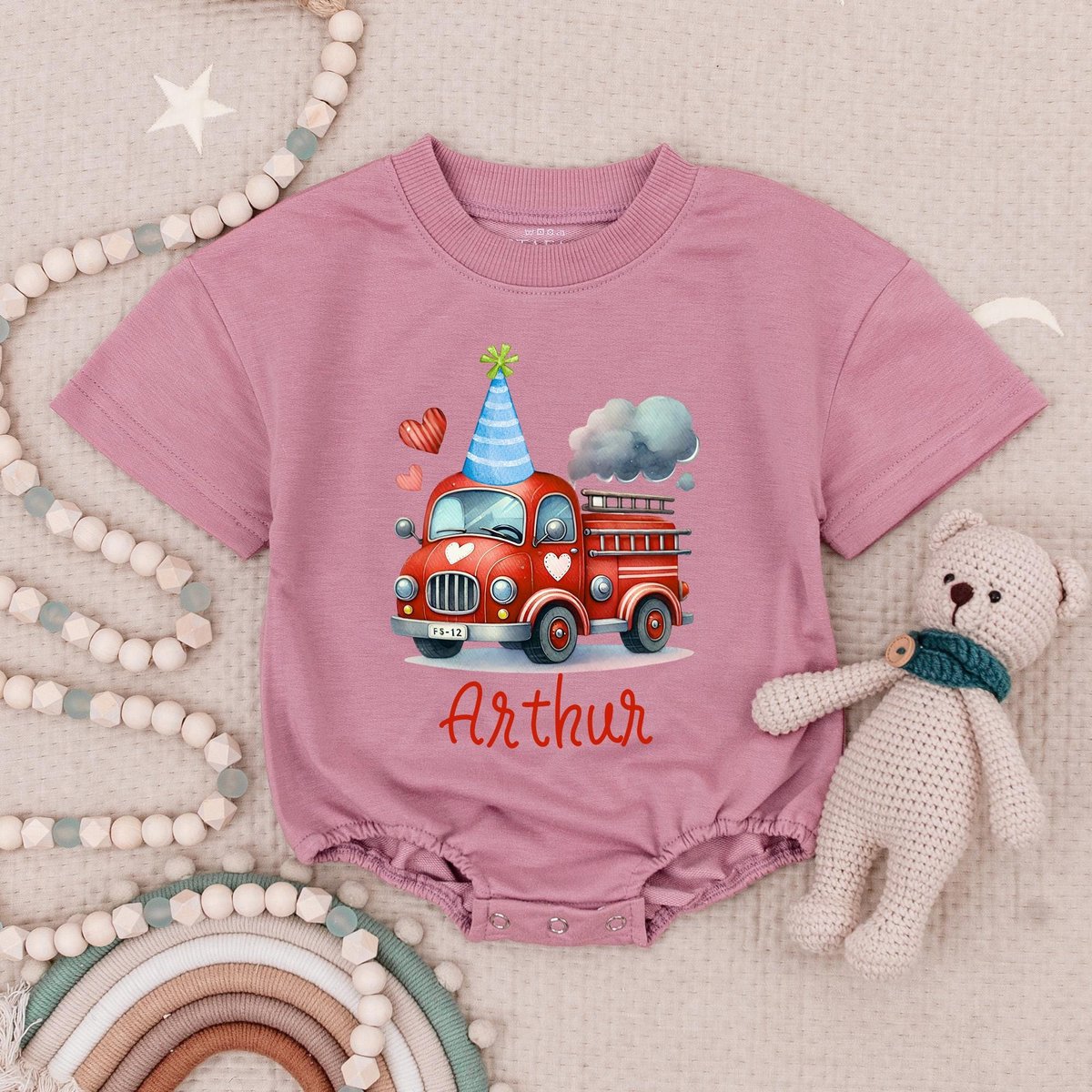 Custom Name Fire Truck Birthday Baby Romper Fire Engine Party Truck Birthday Babysuit Vehicle Birthd