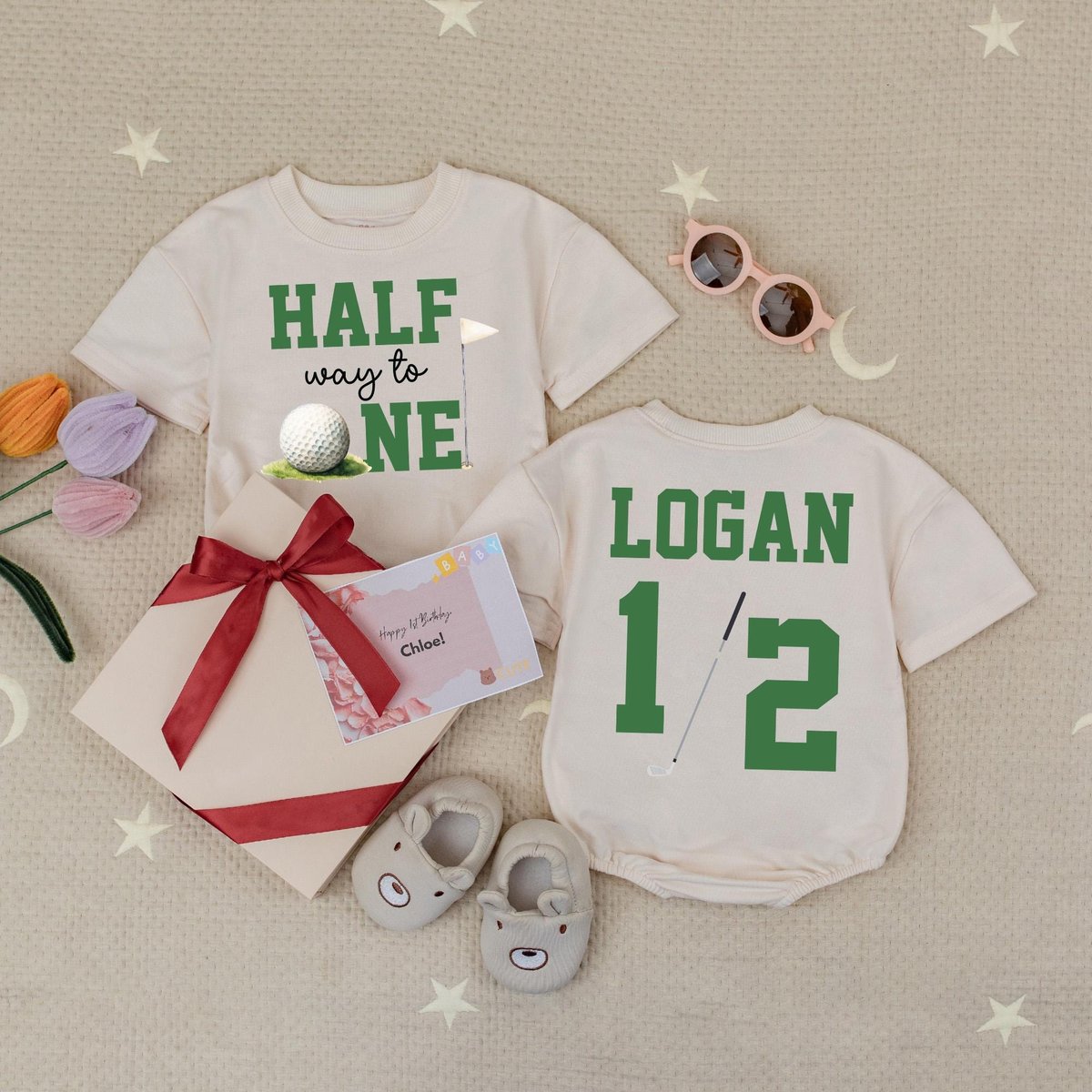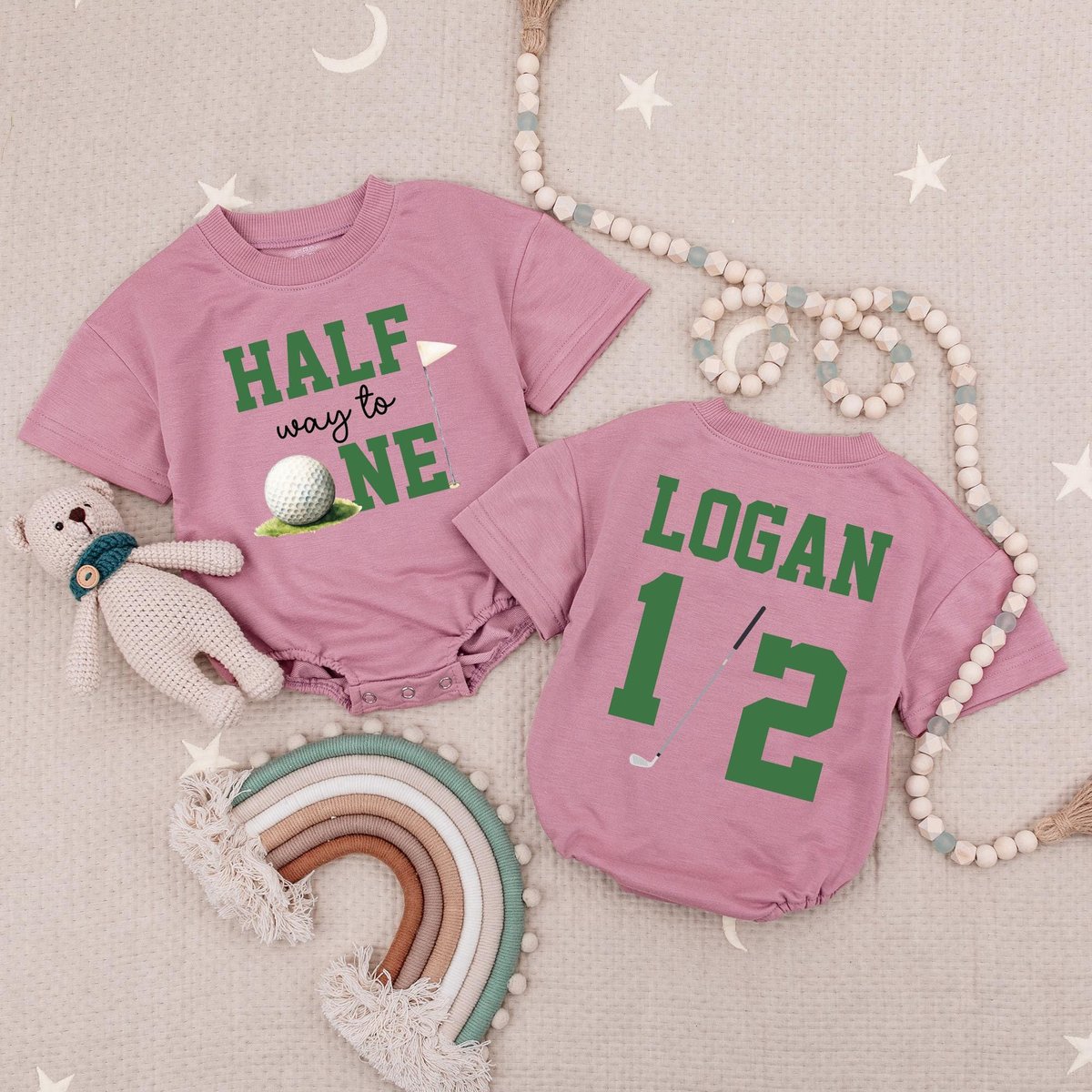 Custom Name Half Way To One Baby Romper Golf 6 Month Baby Outfit Golf Half Birthday Party Custom 12