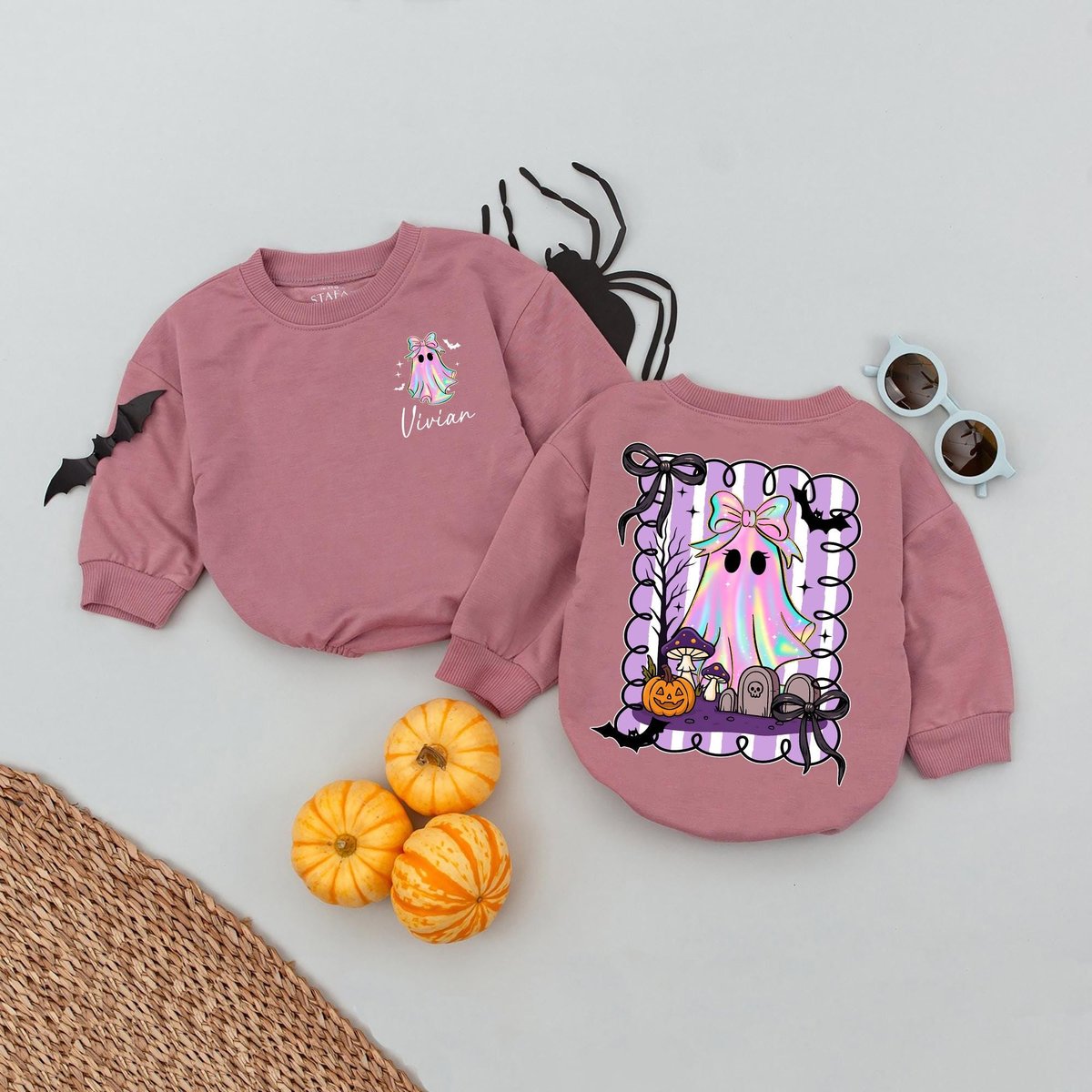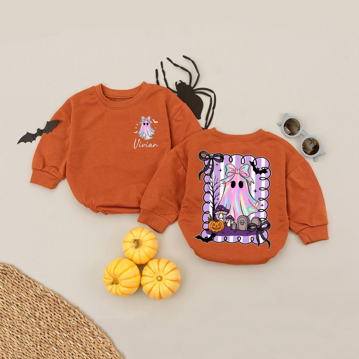 Custom Name Halloween Baby Romper First Halloween Girl Romper Halloween Spooky Season Bodysuit Cute