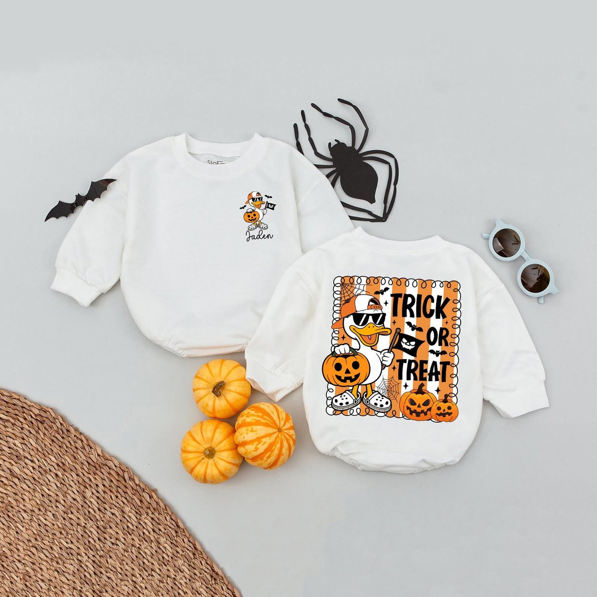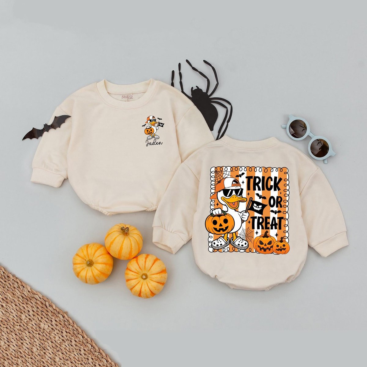 Custom Name Halloween Goose Trick or Treat Baby Romper Boy Halloween Goose Baby Bodysuit Halloween P