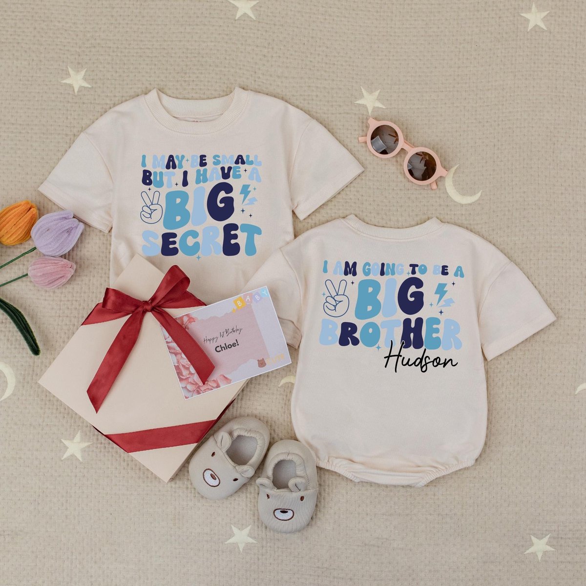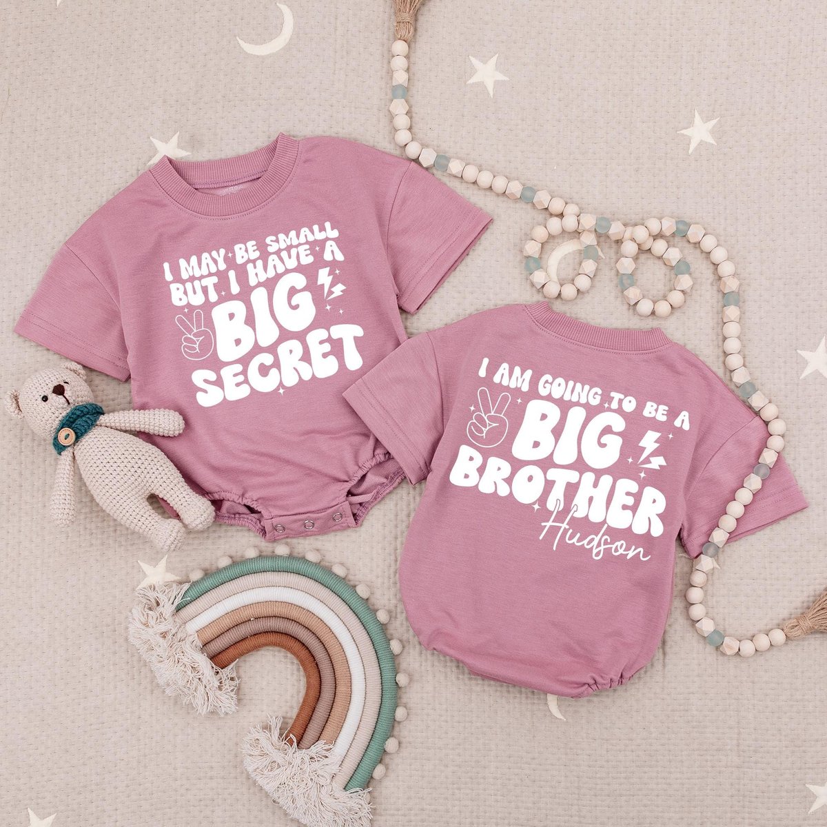Custom Name I May Be Little But I Have A Big Secret Big Bro Bubble Romper Baby Announcement Gift Tre