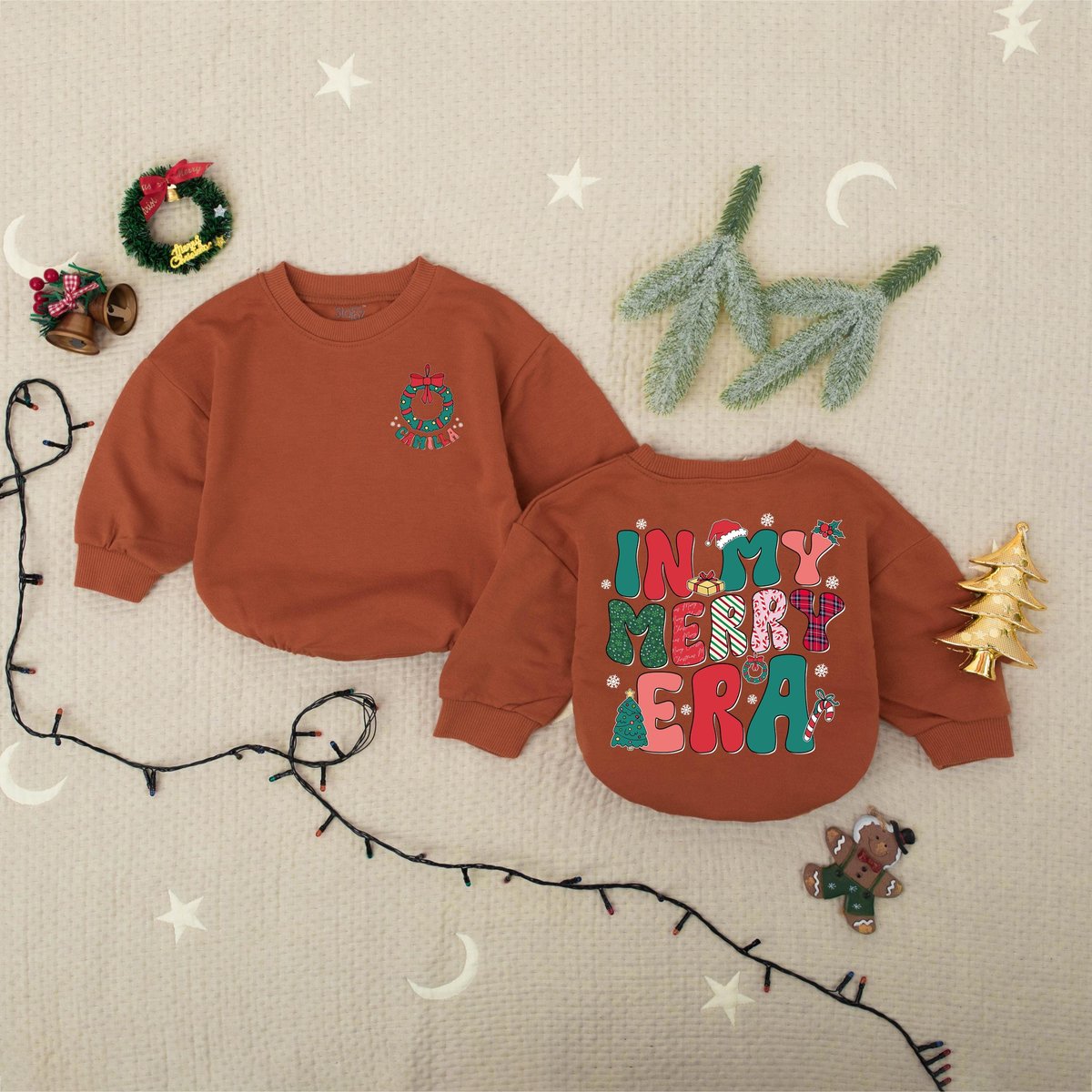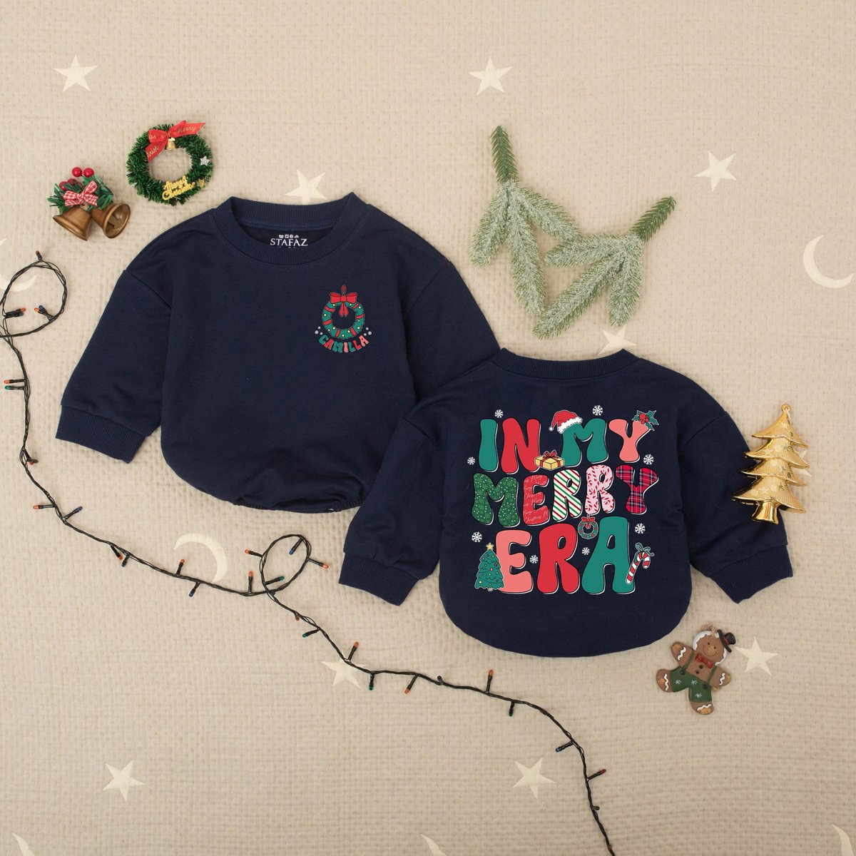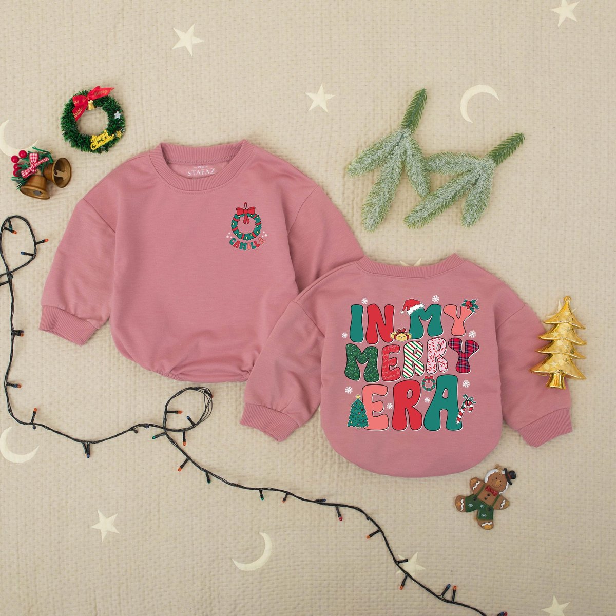 Custom Name In My Merry Era Bubble Romper Funny Christmas 2025 Baby Romper Holiday Group Matching Ba