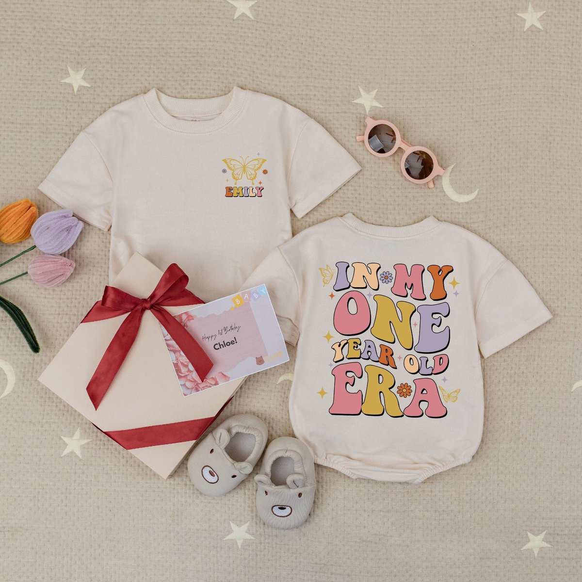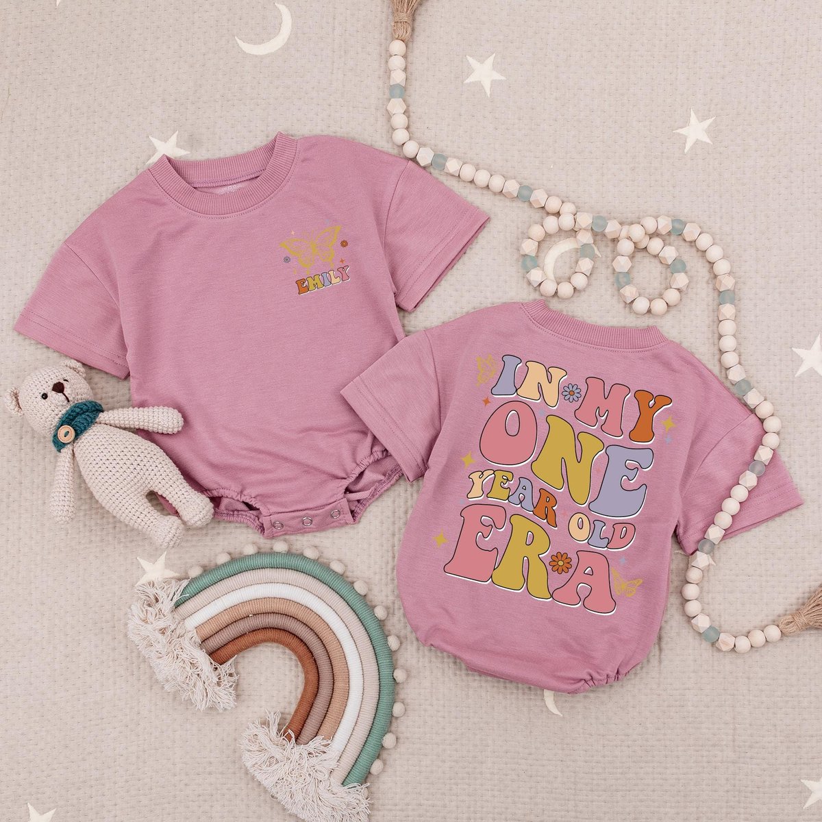 Custom Name In My One Year Old Era Baby Romper Personalized 1st Birthday OutfitBaby Girl or Boy Body