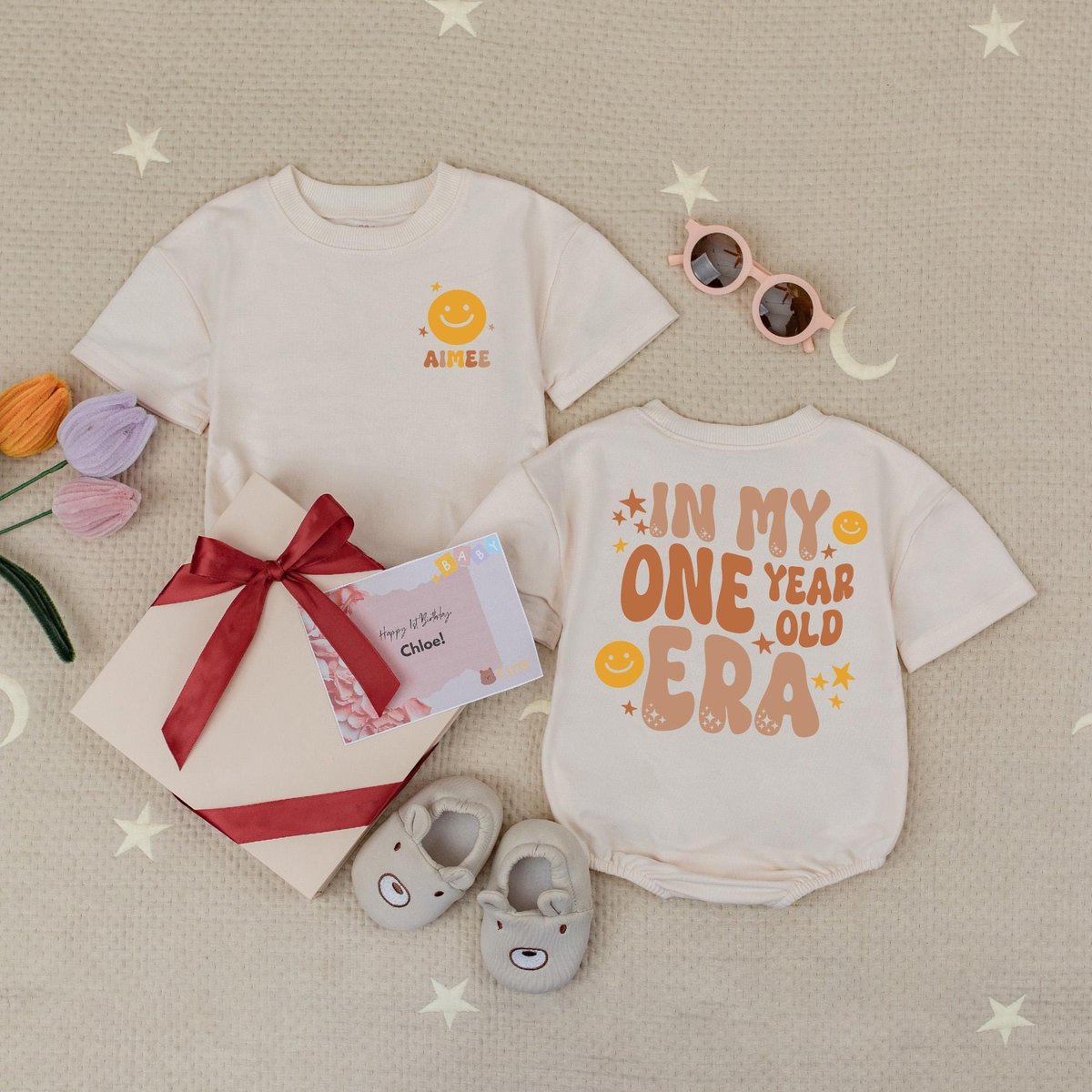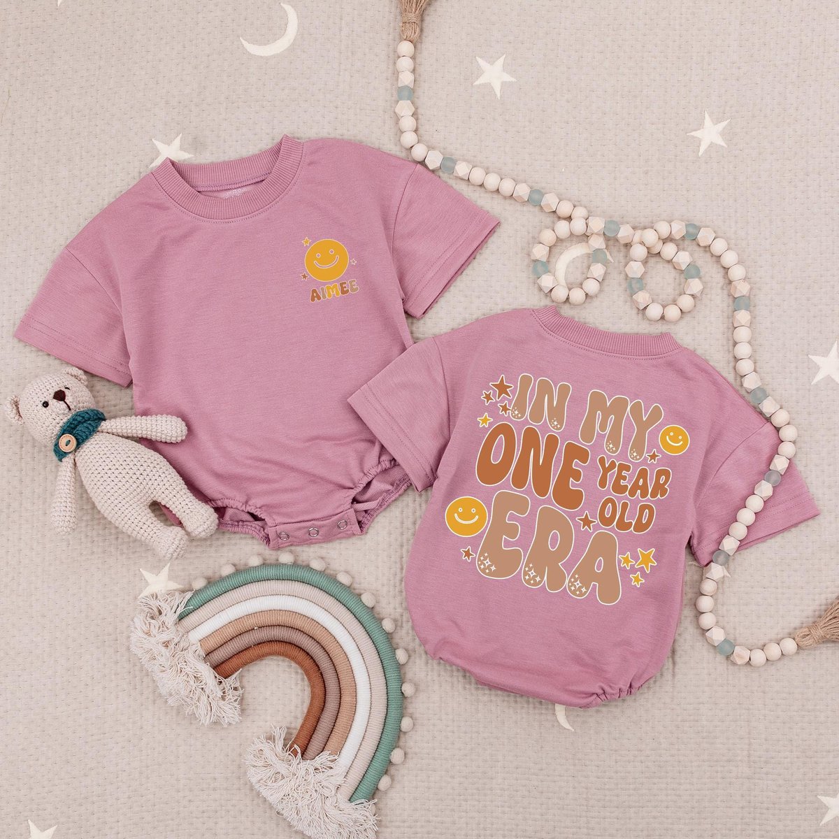 Custom Name In My One Year Old Era First Birthday Baby Romper Personalized 1st Birthday BodysuitCute