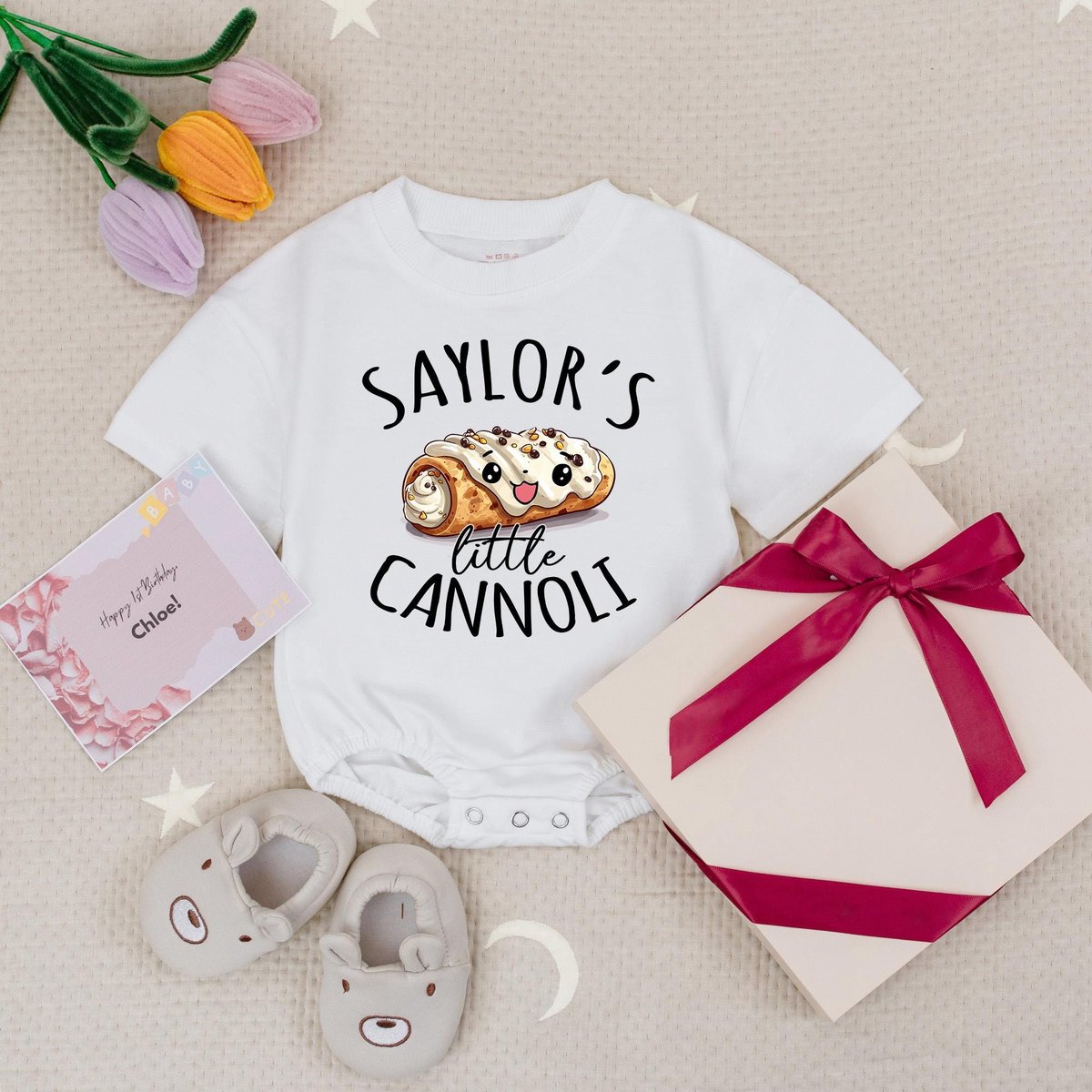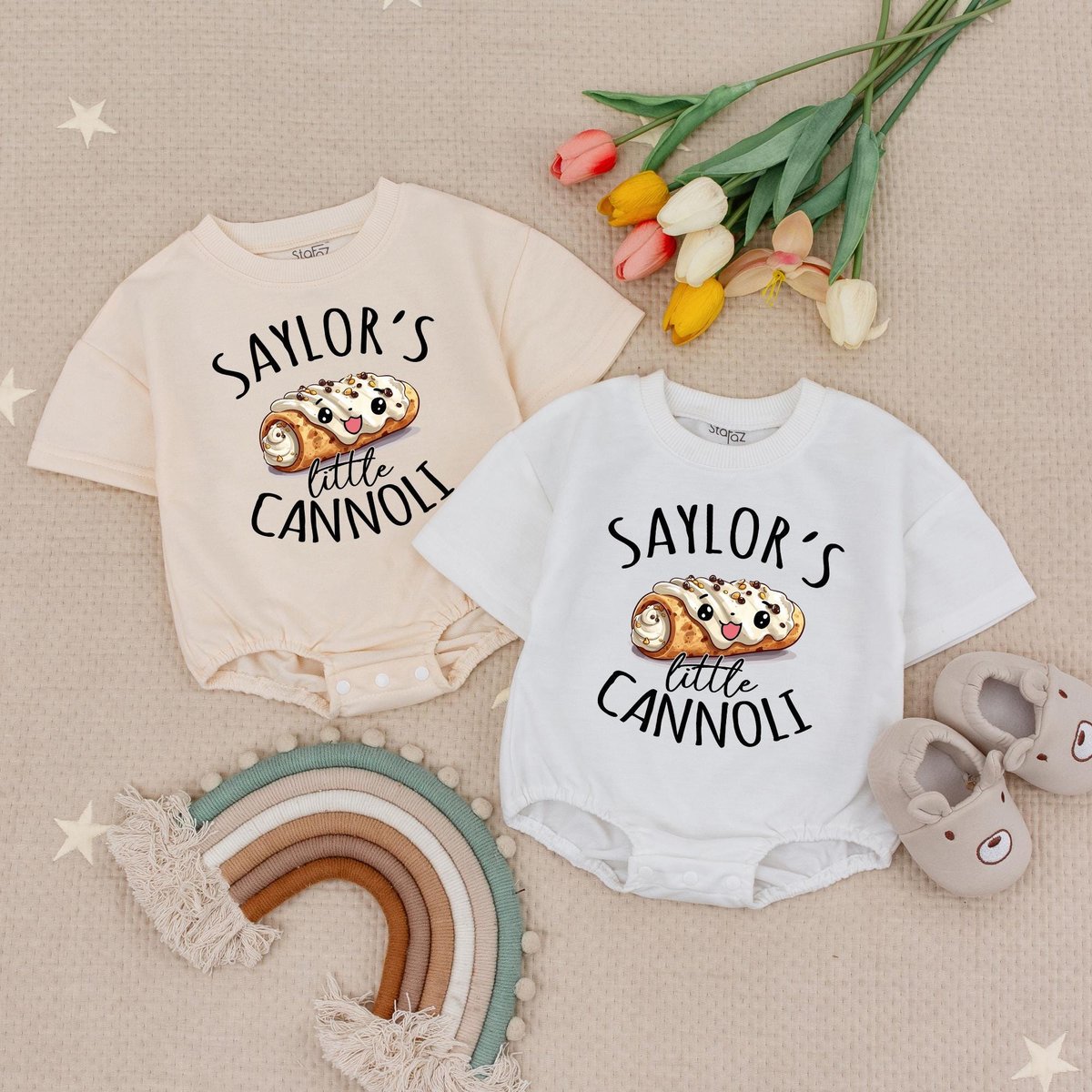 Custom Name Little Cannoli Baby Romper Short Italian Baby Bodysuit Foodie Baby Romper Pastry Italian