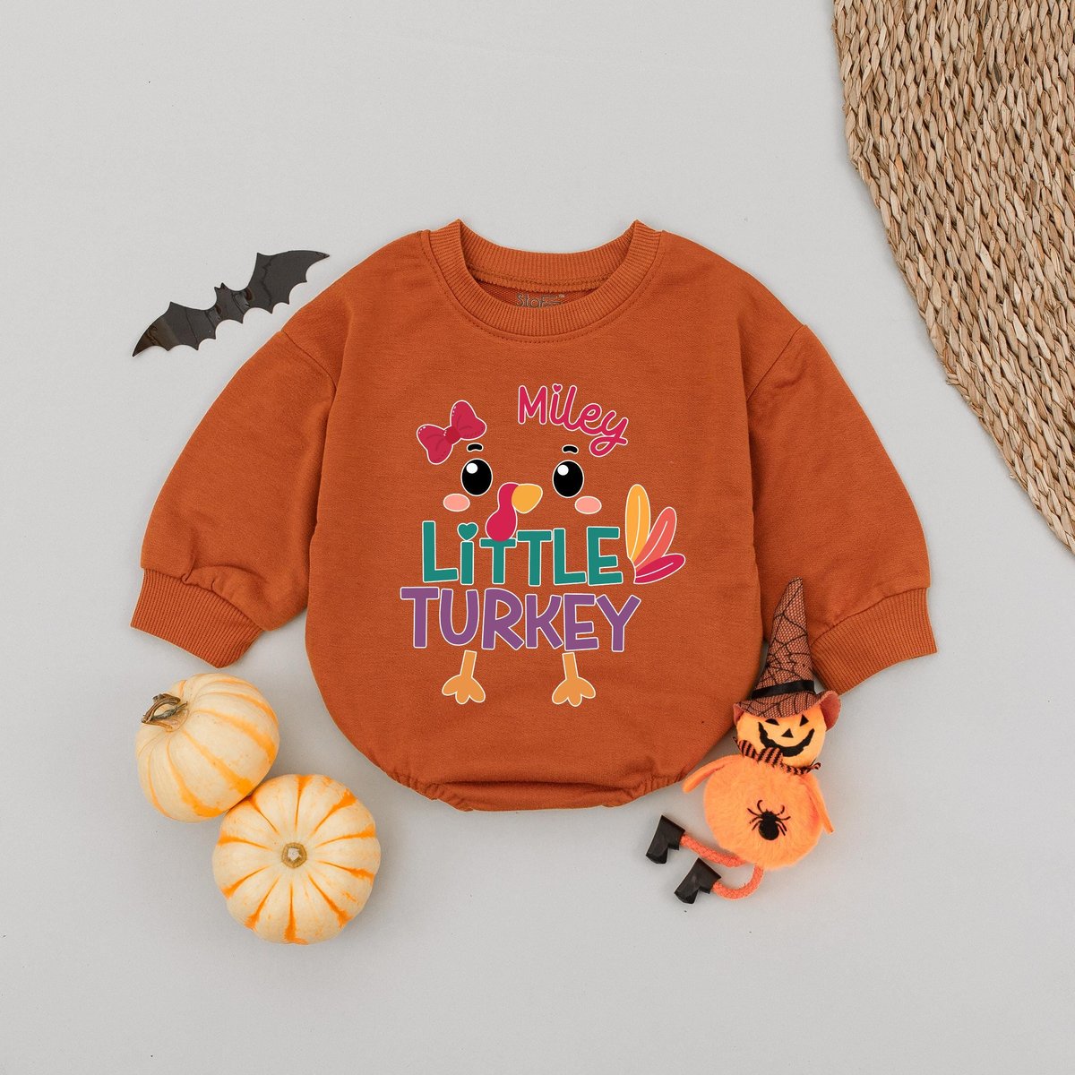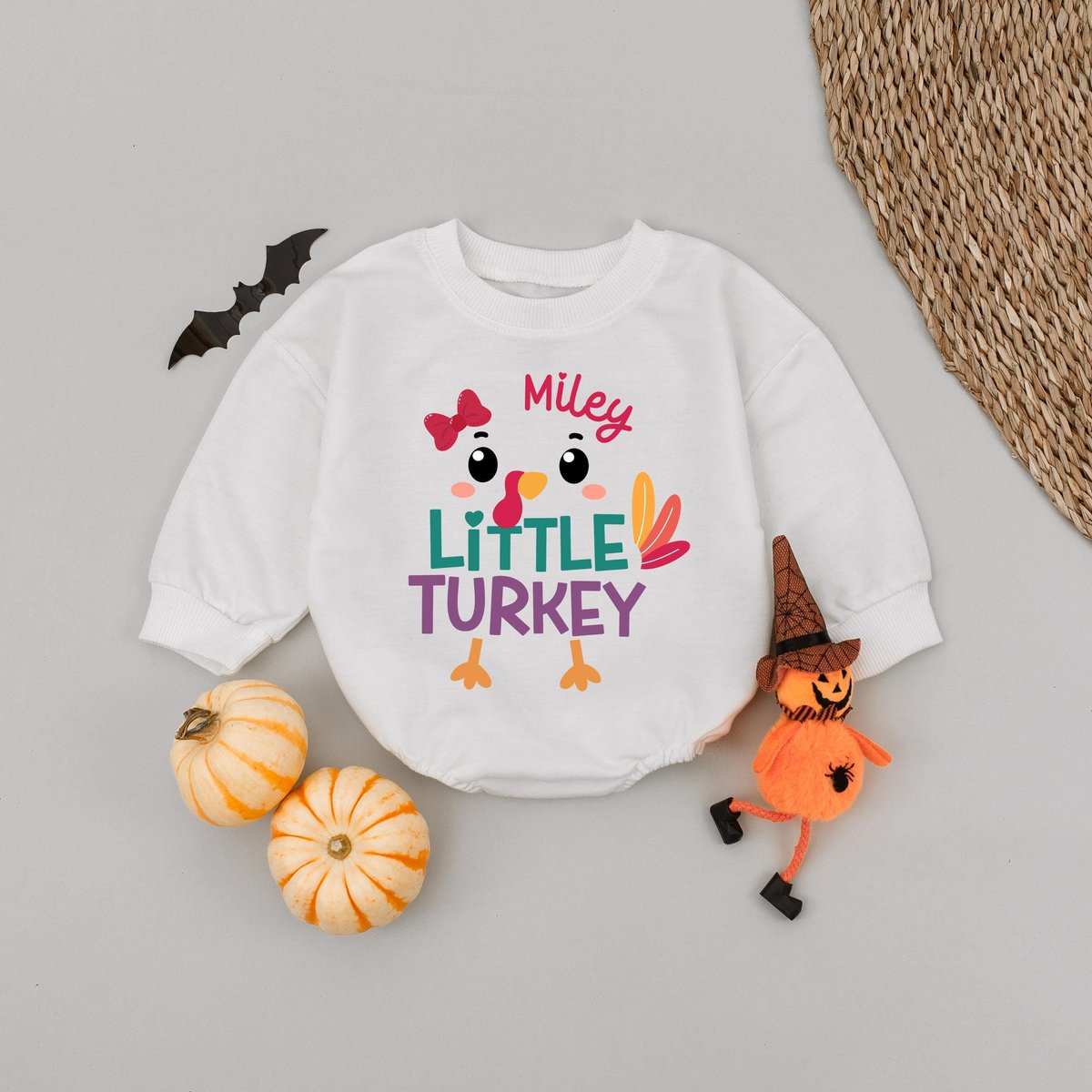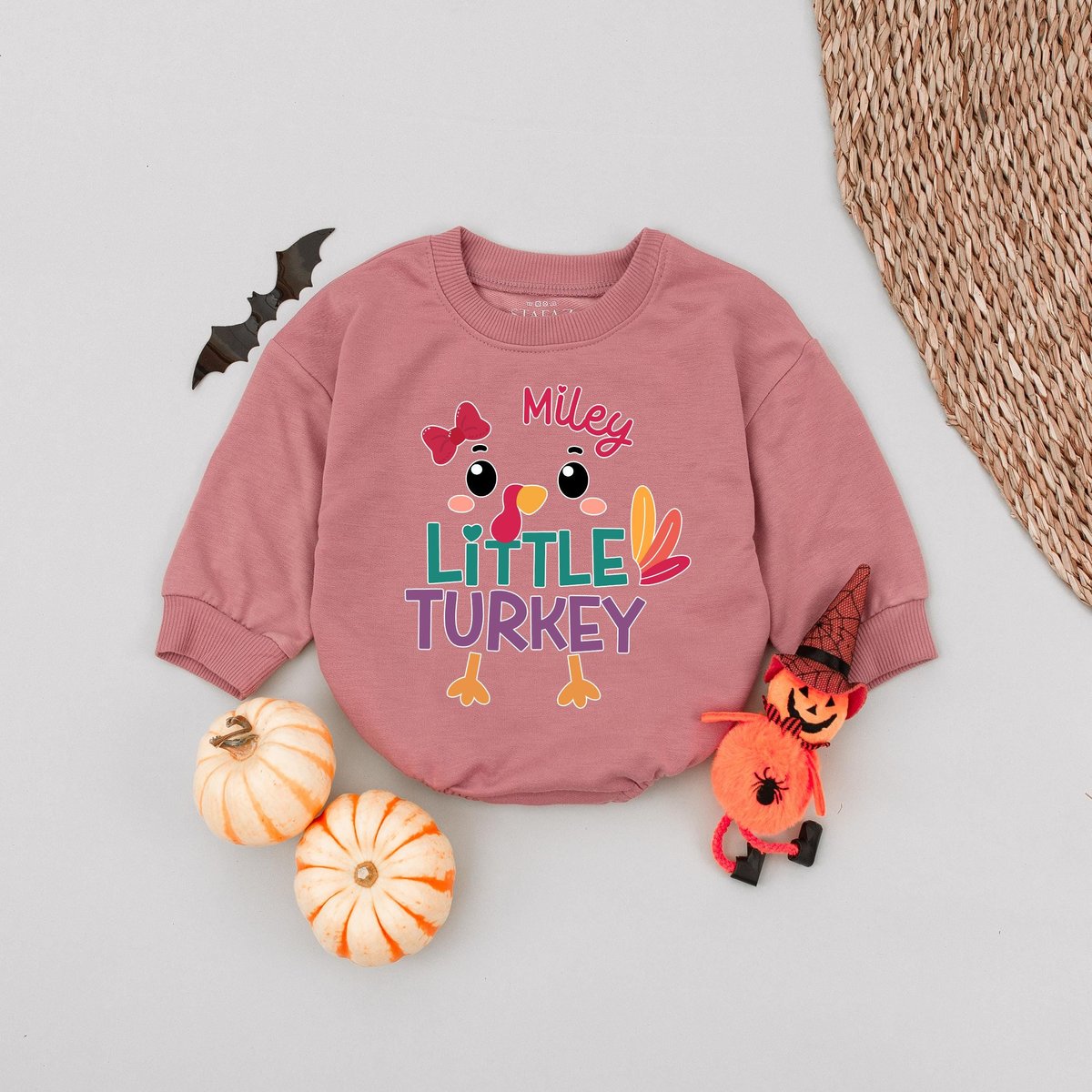 Custom Name Little Turkey Thanksgiving Bubble Romper First Thanksgiving Baby Romper Baby Girl Thanks