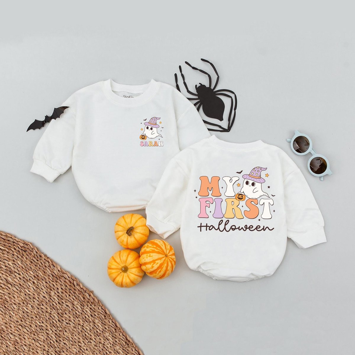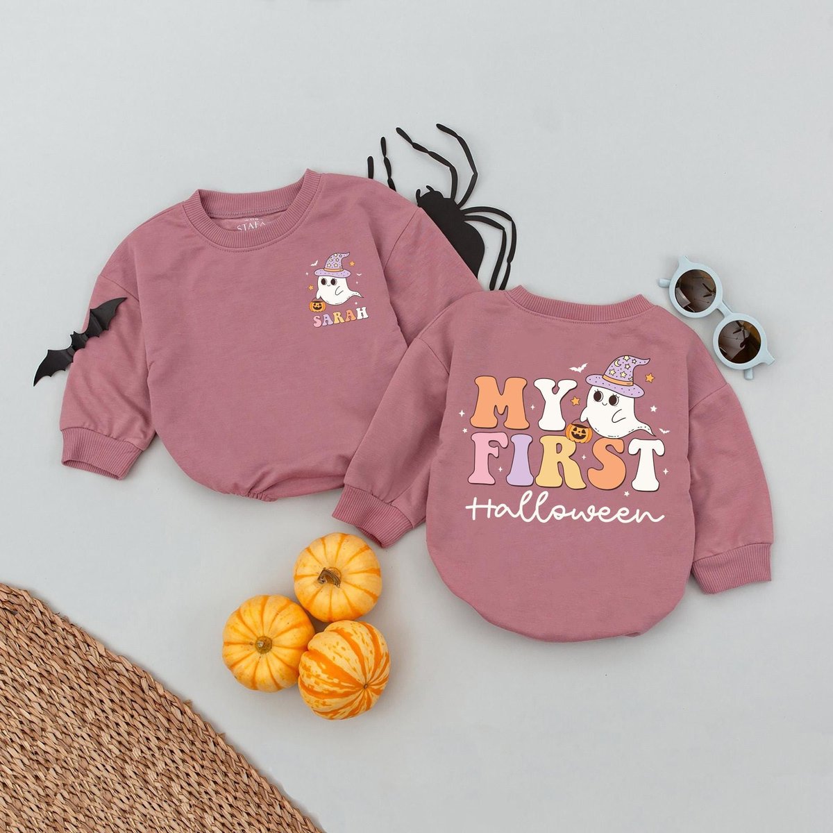 Custom Name My First Halloween Baby Romper Personalized Fall Baby Outfit Pumpkin Baby Bodysuit Infan