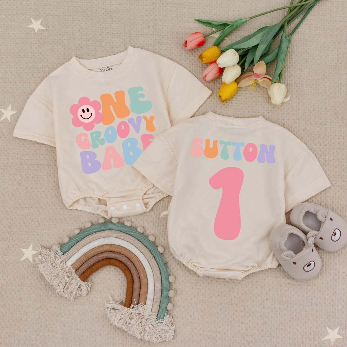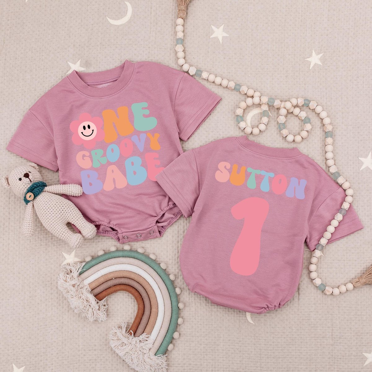 Custom Name One Groovy Babe Baby Romper Baby Girls 1st Birthday Baby Bodysuit First Birthday Outfit