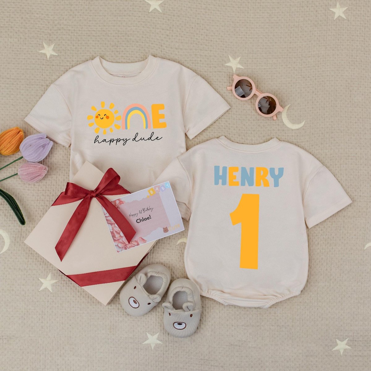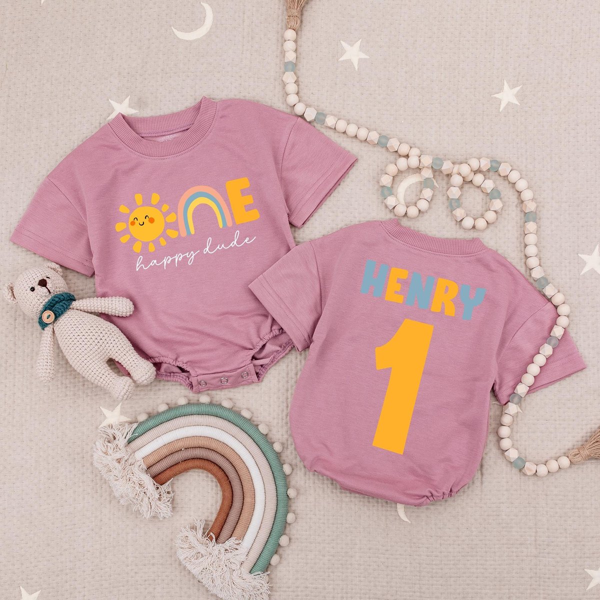 Custom Name One Happy Dude Sun Baby Romper 1st Birthday Outfit Sun Birthday Boy Bodysuit One Cool Du