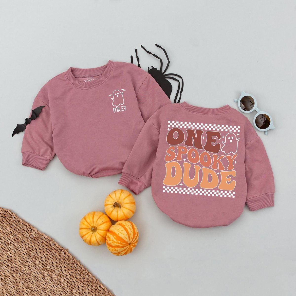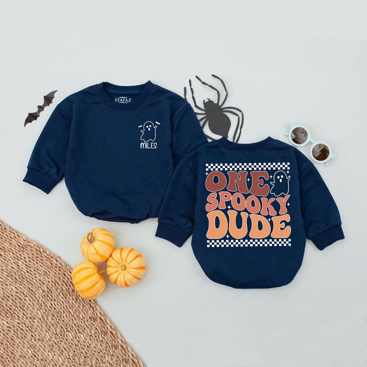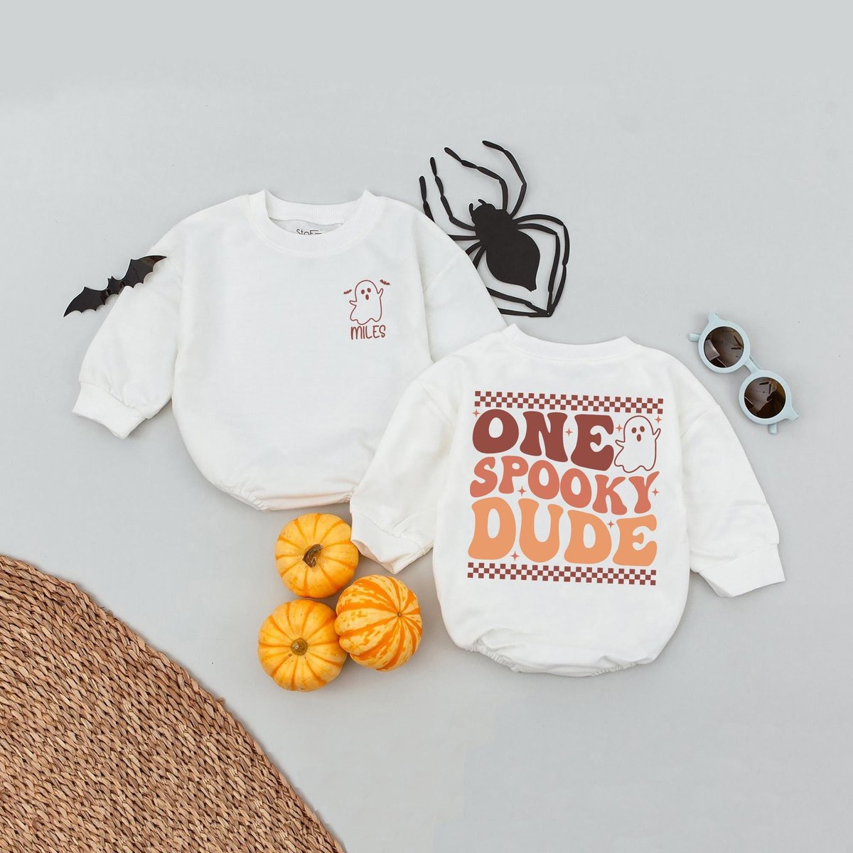 Custom Name One Spooky Dude Baby Romper Pumpkin Retro Halloween Babysuit Halloween Spooky Baby Boo O