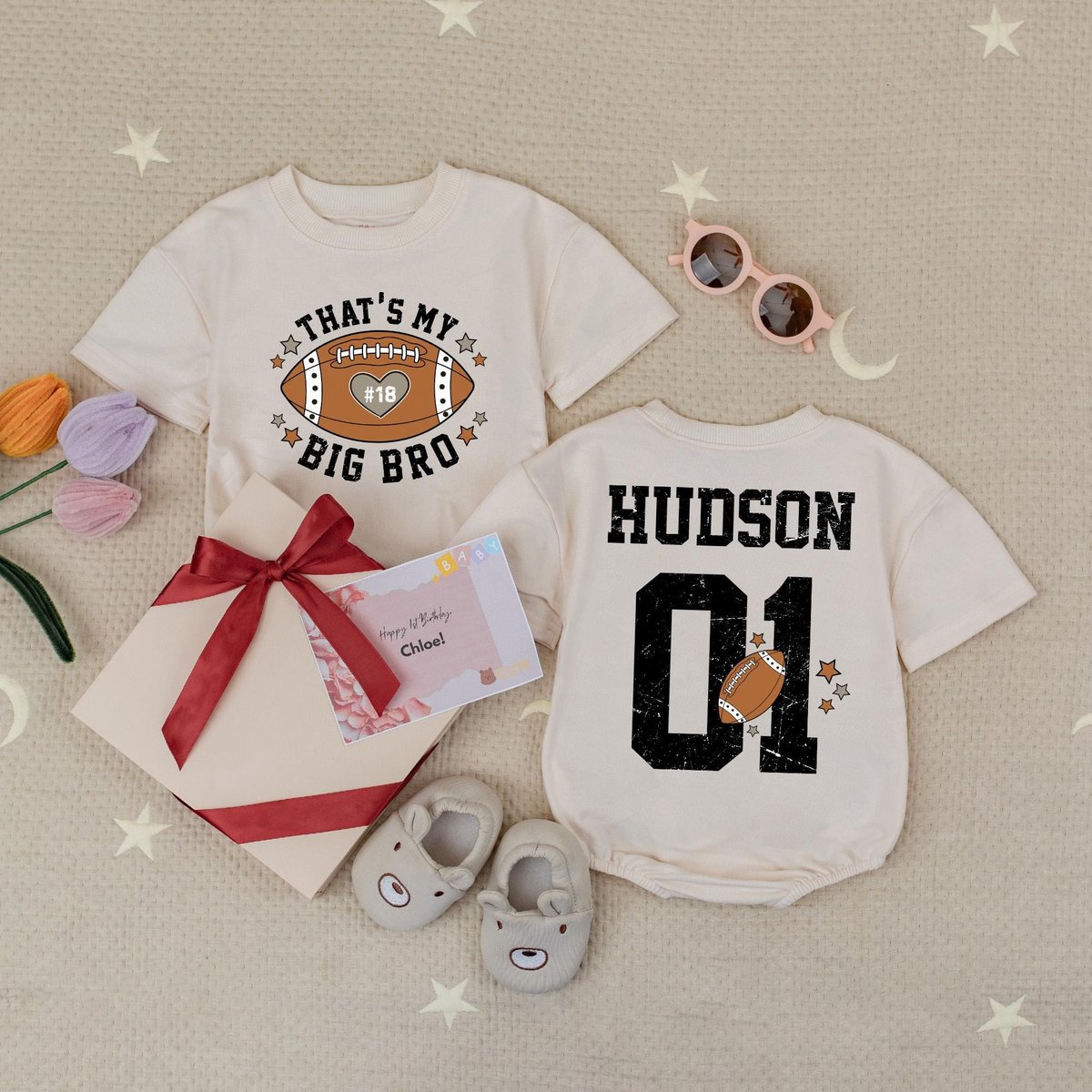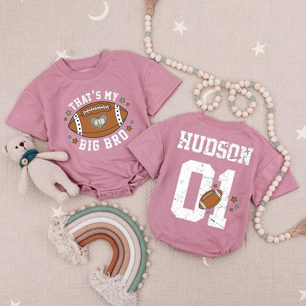 Custom Name That’s my Big Bro Football Baby Romper Game Day Baby Outfit Sports Baby Clothes Brother