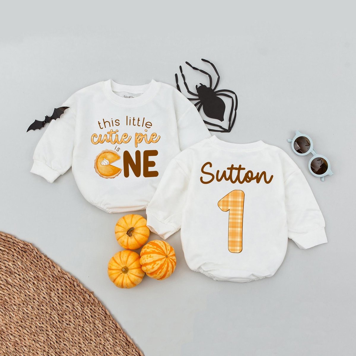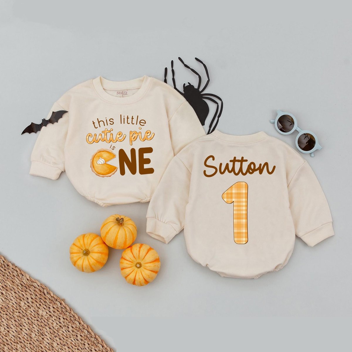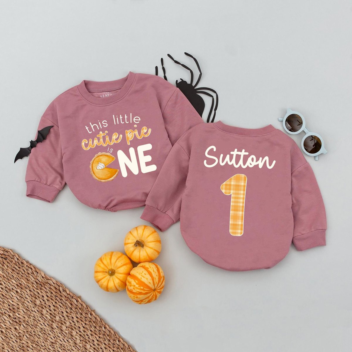 Custom Name This Little Cutie Pie Is One Birthday Baby Romper Thanksgiving Day 1st Birthday Baby Out