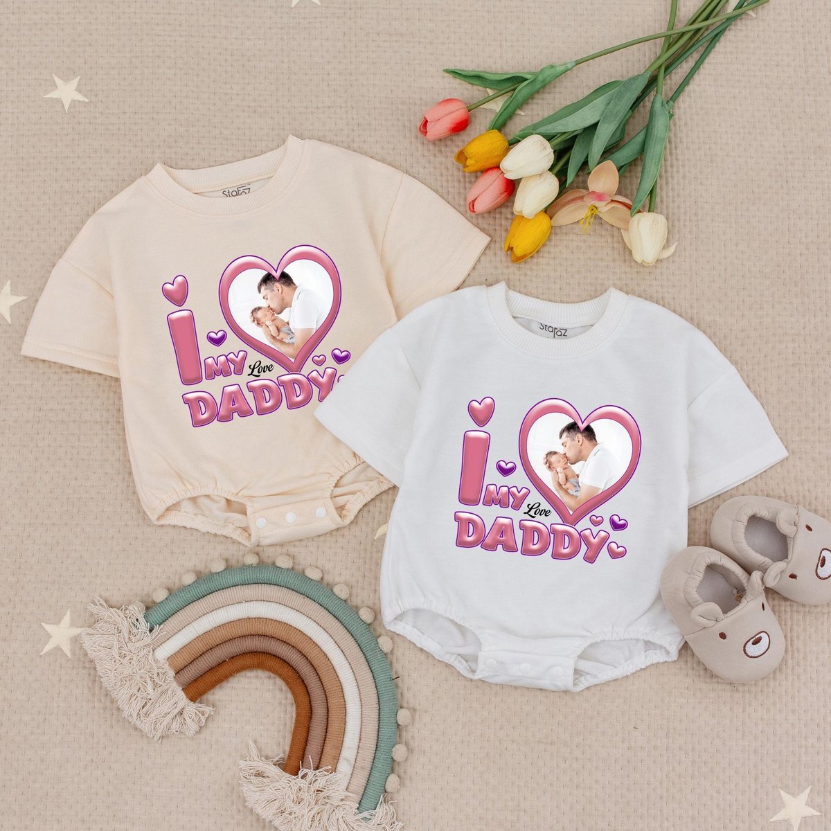 Custom Photo I Love My Daddy Baby Romper Your Photo Here Baby Bodysuit Custom Text Kids Baby Photo G