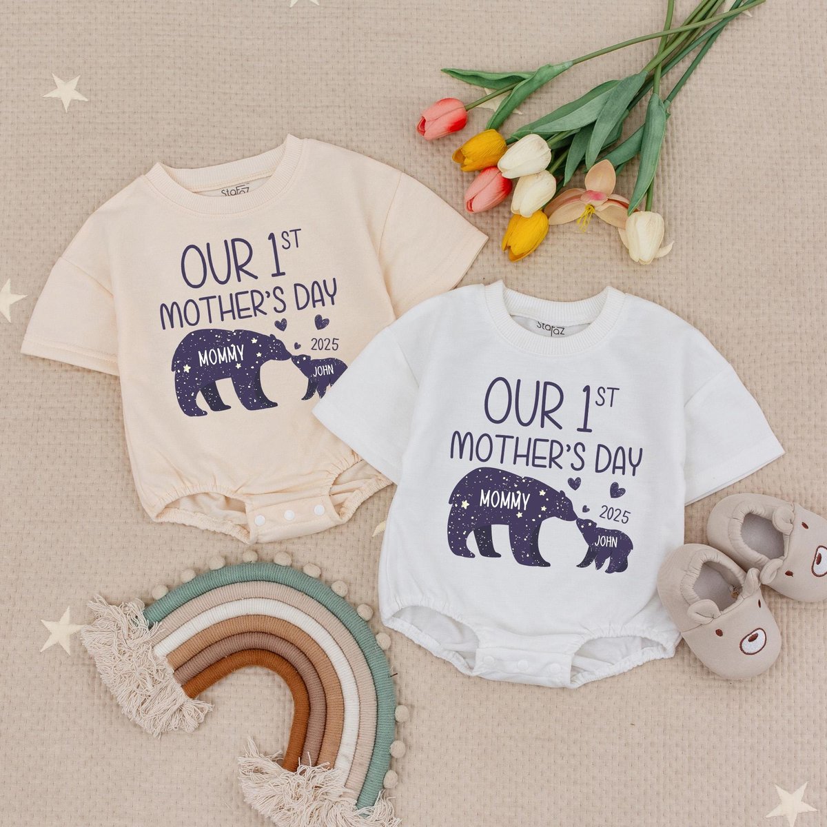 Custom With Names Our 1st Mother’s Day Bear Baby Romper First Mothers Day Outfits First As A Mommy