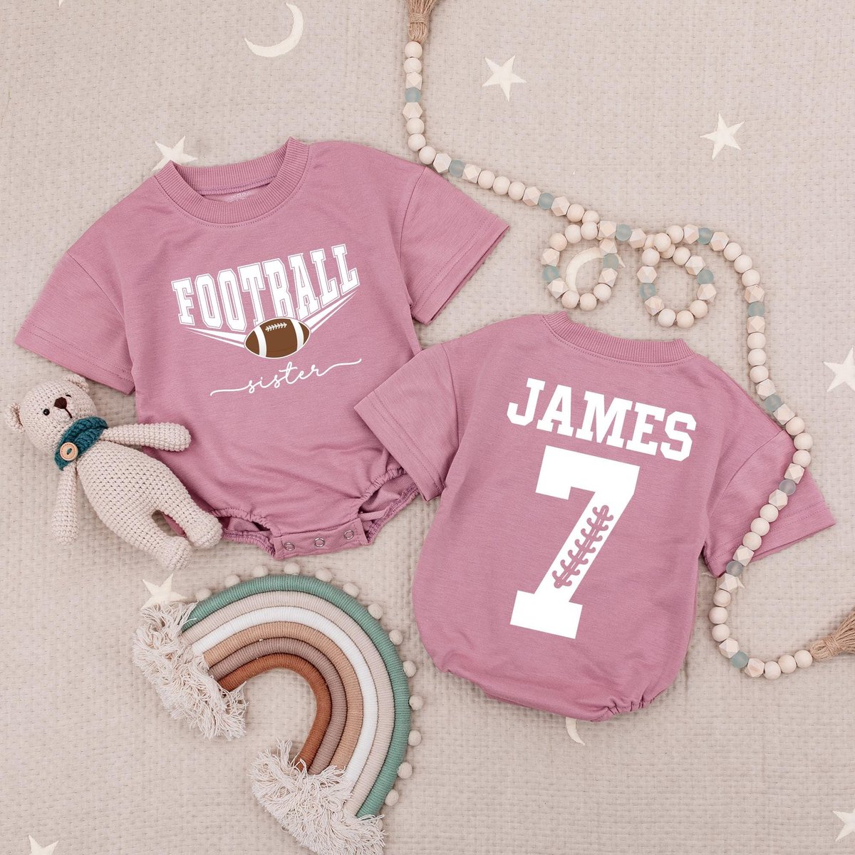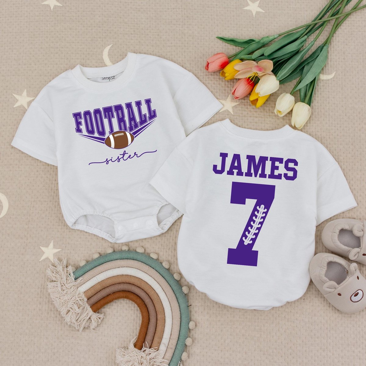 Custom Your Name and Number Football Sister Baby Romper That’s My Brother Football Babysuit Footbal