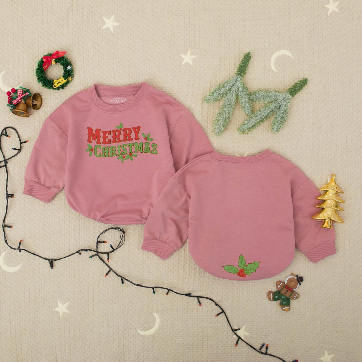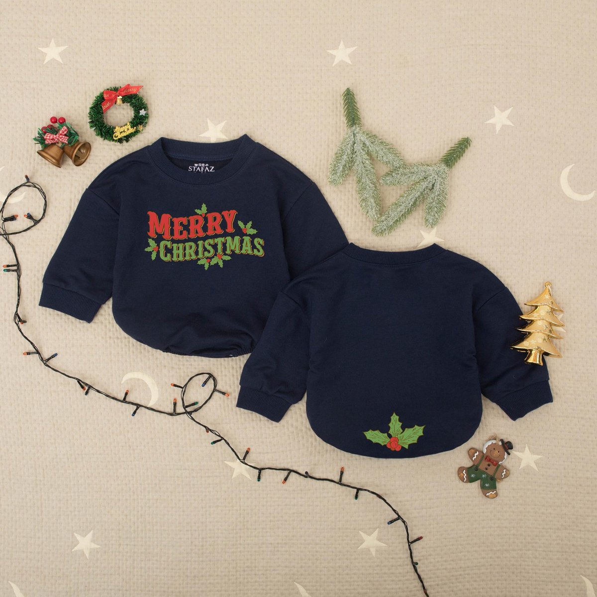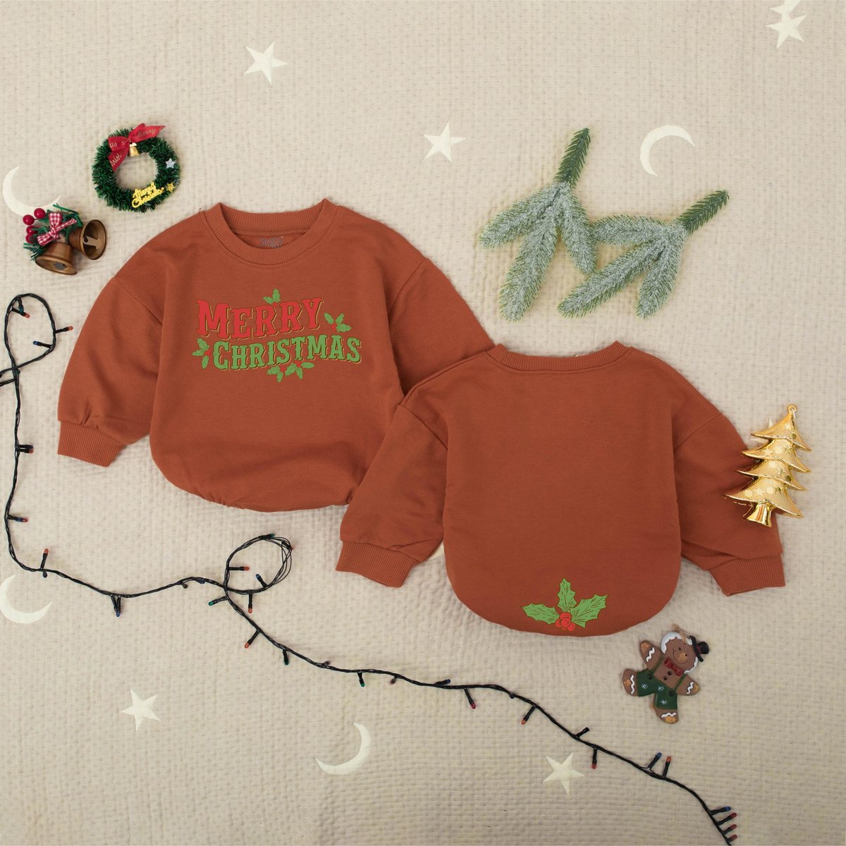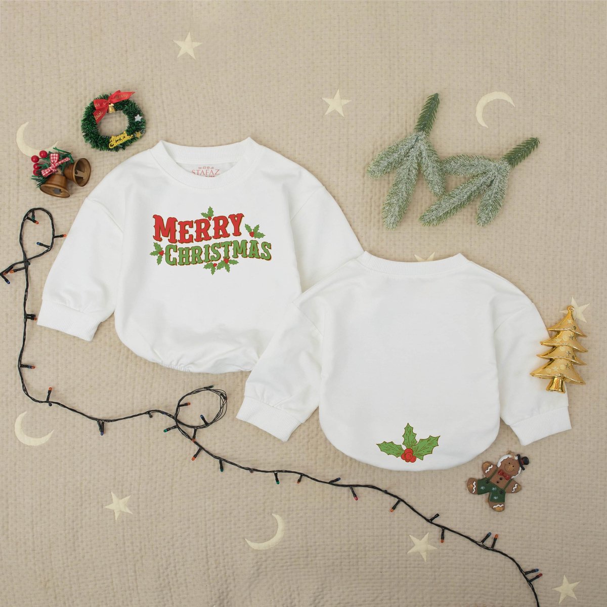 Cute Merry Christmas Bubble Romper Baby Xmas Outfit First Xmas Baby Outfit Newborn Holiday Bodysuit