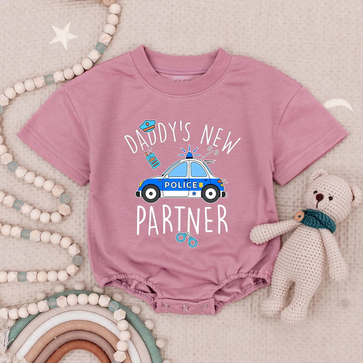 Daddy’s New Partner Police Bubble Romper Daddy Police Officer Baby Outfit Police Baby Shower Gifts