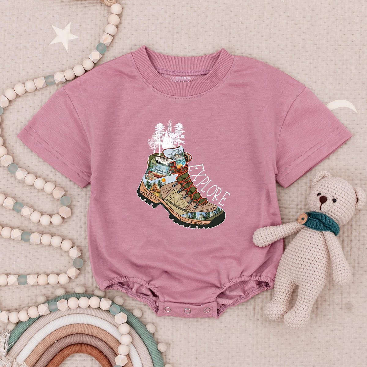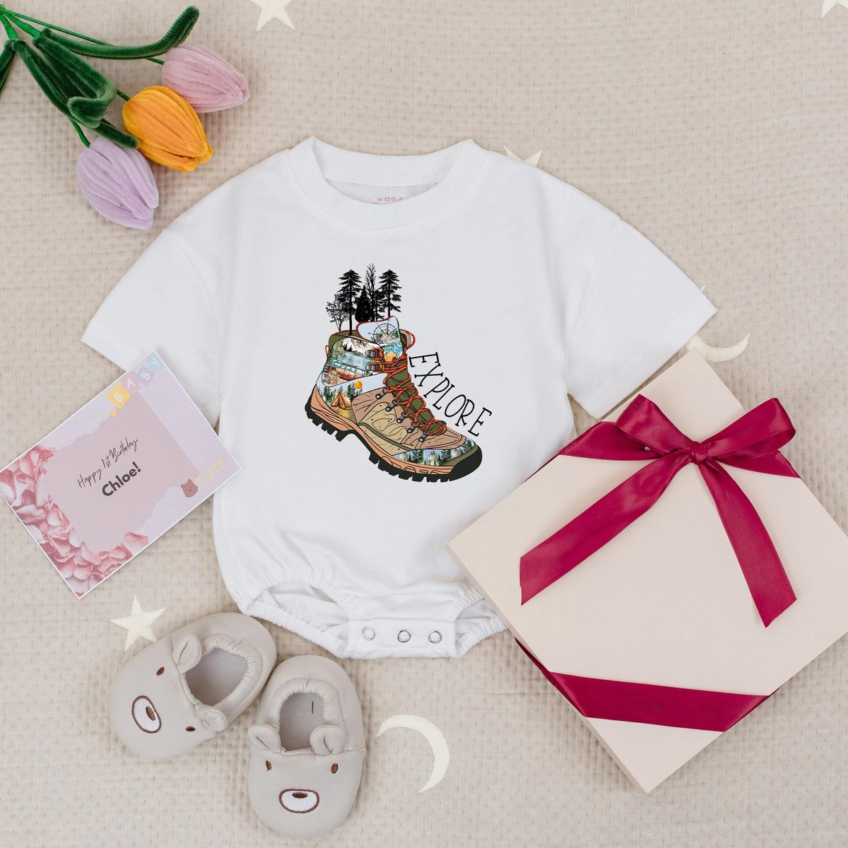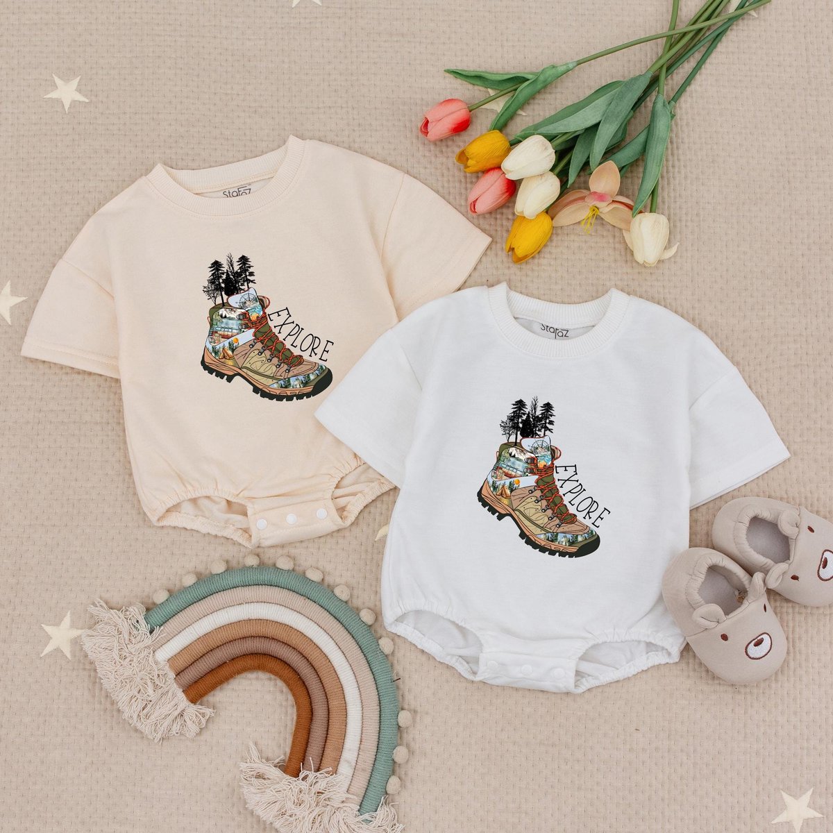Explore Hiking Boot Baby Romper Hiking Outdoors Adventure Baby Bodysuit Natural Baby Suit Camping Ba
