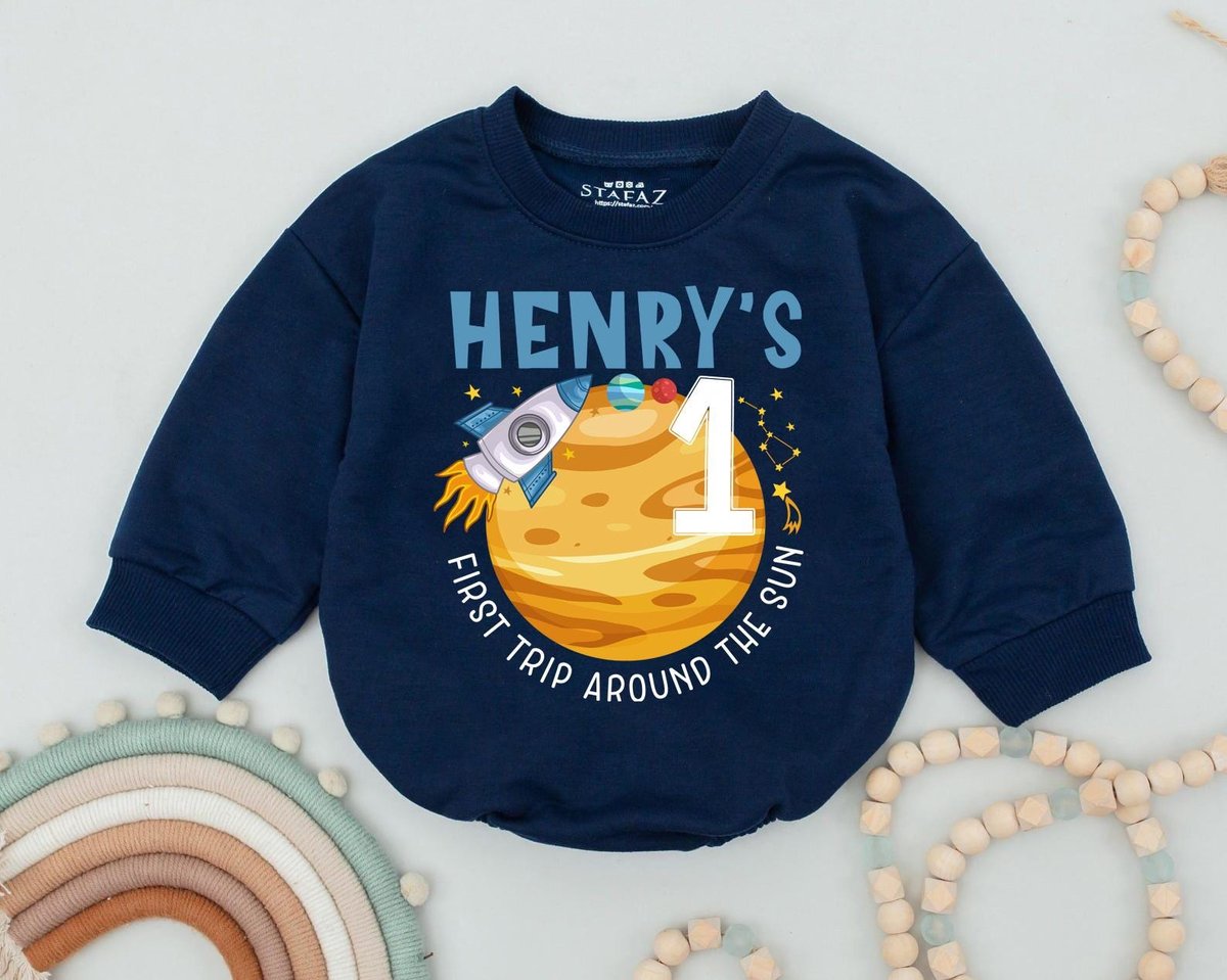 First Trip Around the Sun Baby Bodysuit for Boy Space First Birthday Baby Romper Space Smash Cake Ou