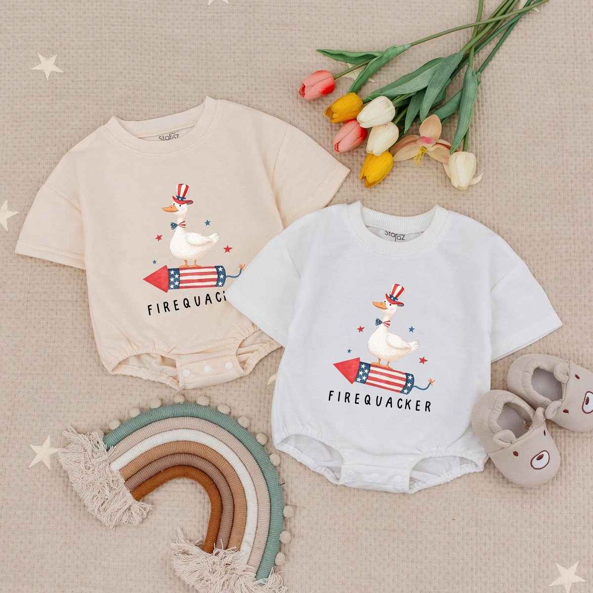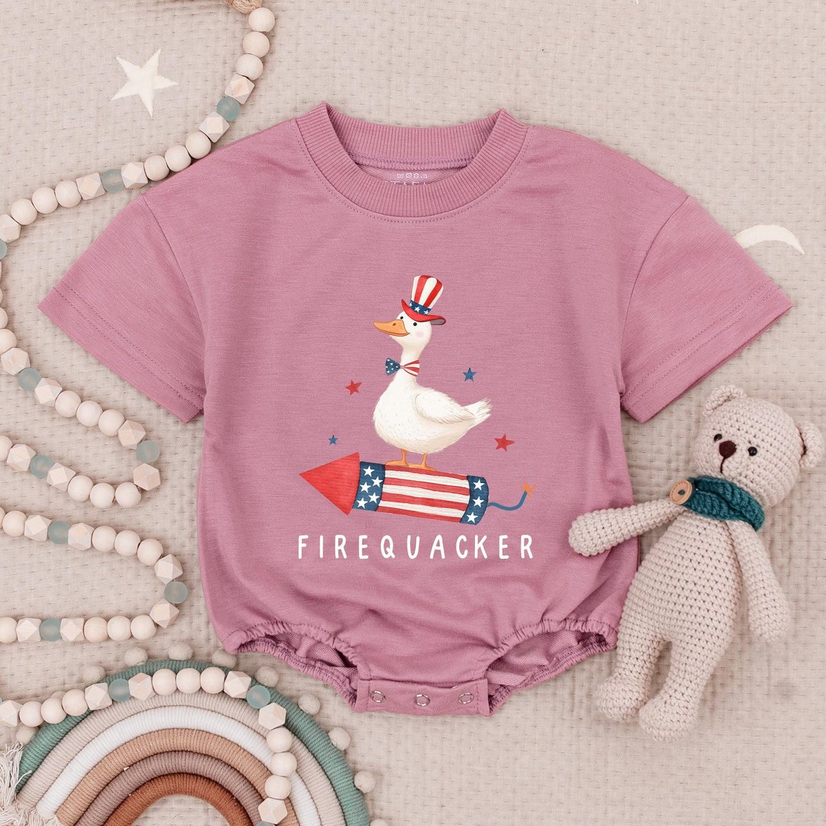 Funny Fourth Of July Baby Outfit Firequacker Baby Clothes Independence Day Baby Romper USA Goose Bab