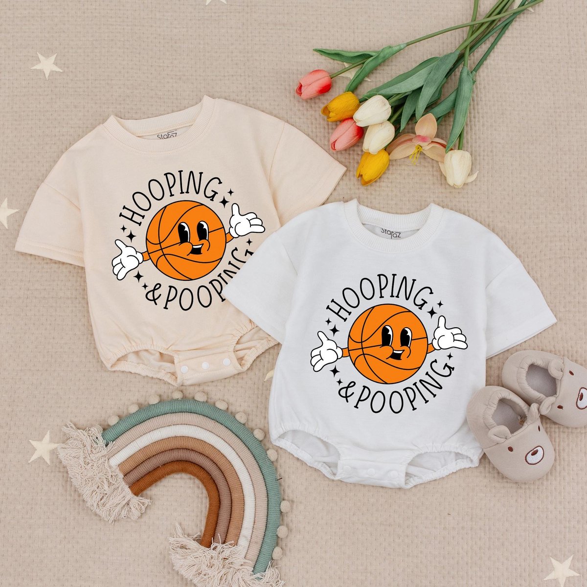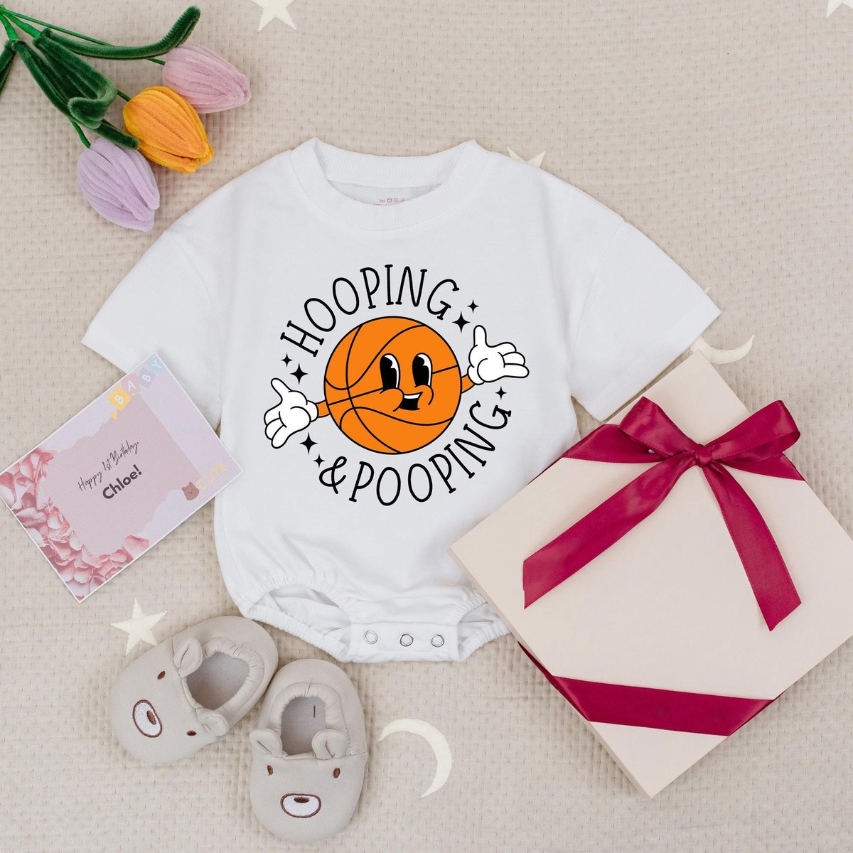 Funny Basketball Hooping and Pooping Baby Romper Natural Cotton Baby Shower Gift for Sports Fan Bask