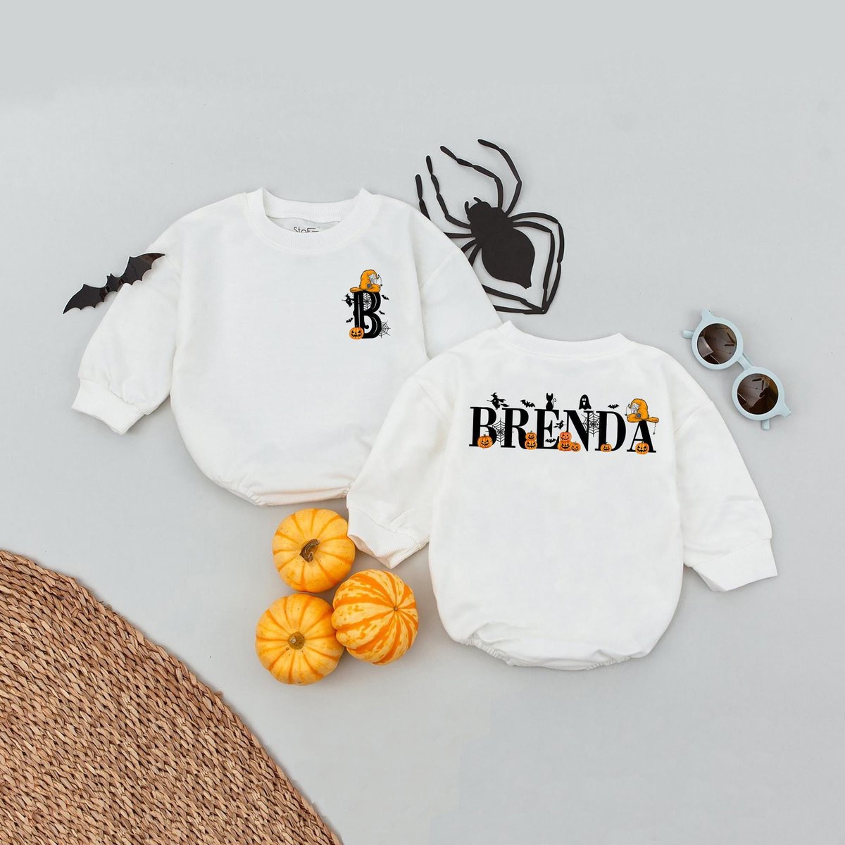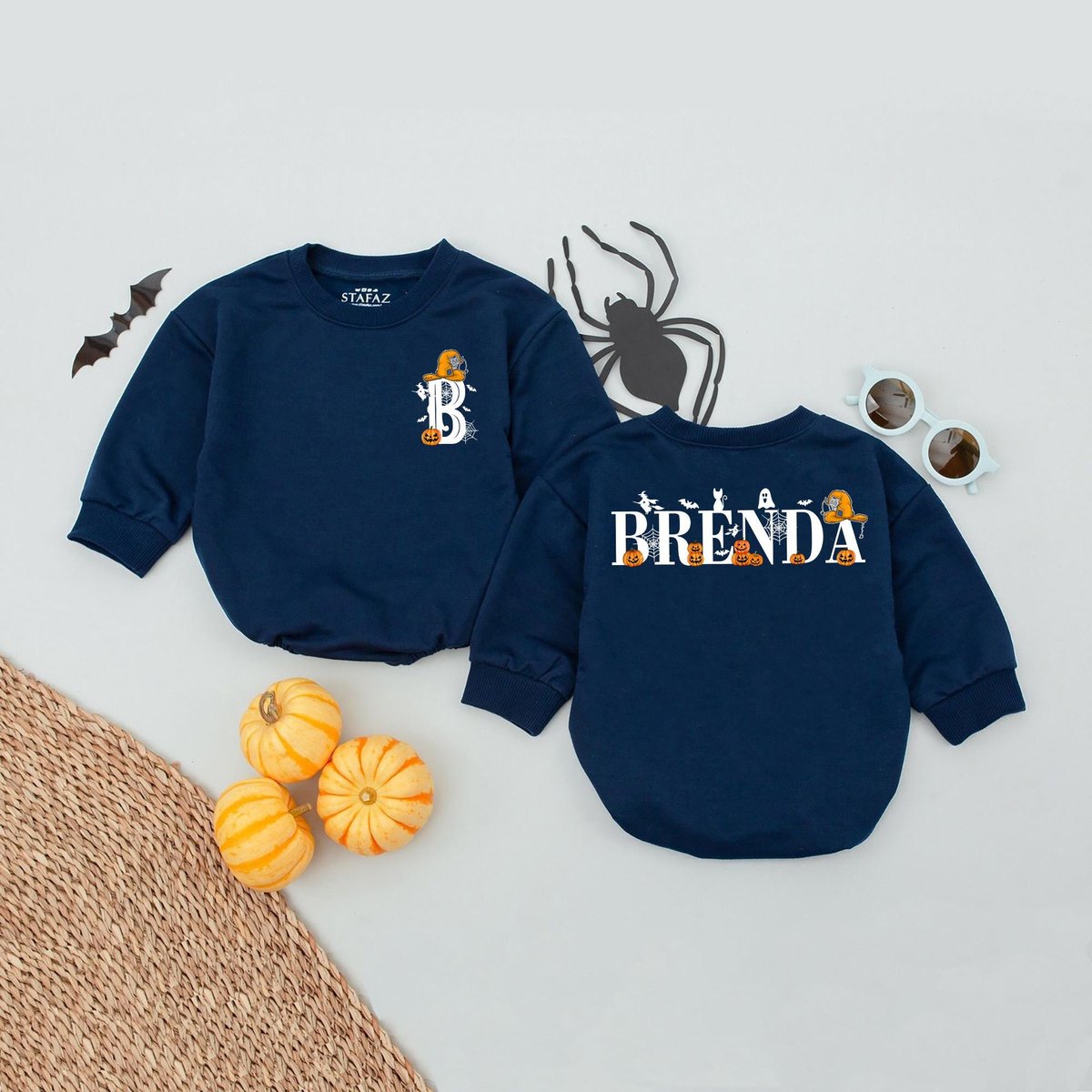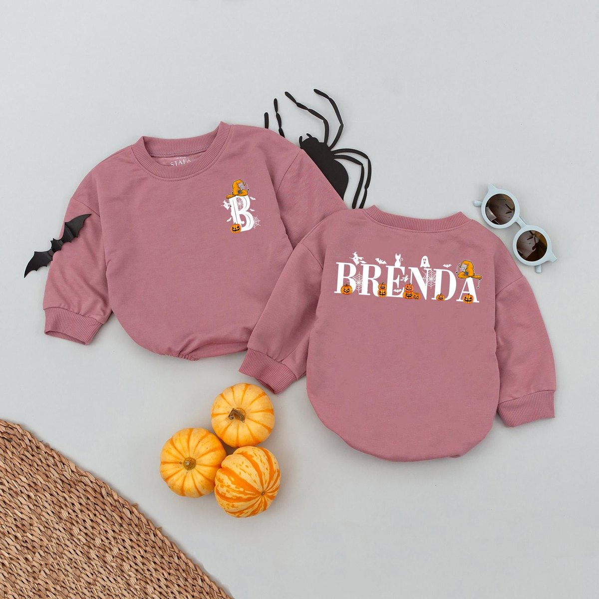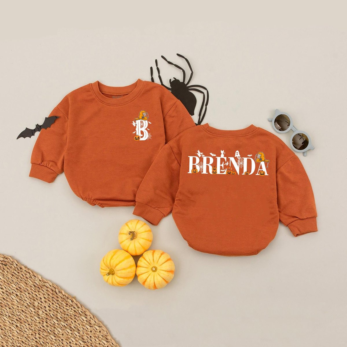Girls Personalized Name Halloween Front Back Bubble Romper Halloween Custom Sweatshirt Kids Hallowee