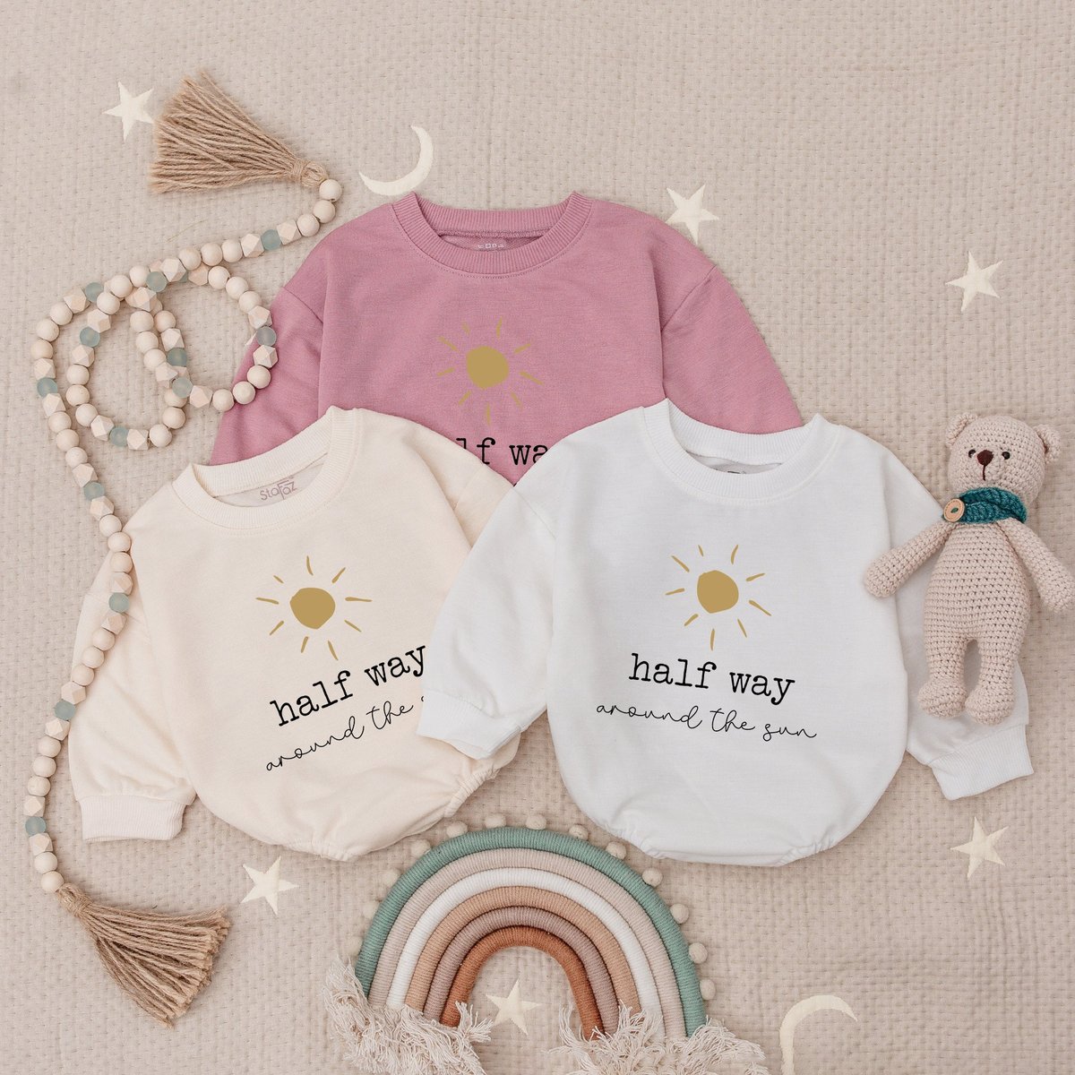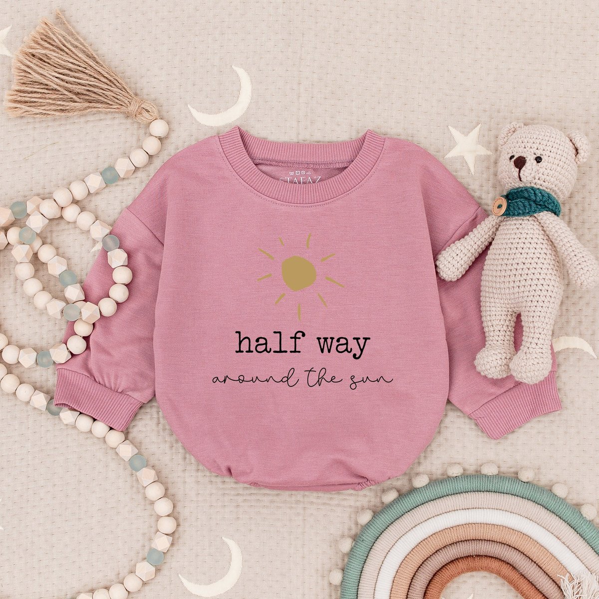 Half Way Around The Sun Birthday Romper Birthday Bodysuit 12 Way To One Birthday Outfit Birthday Gif