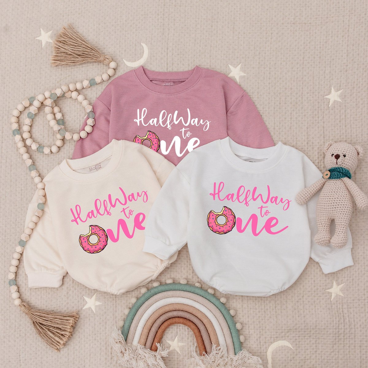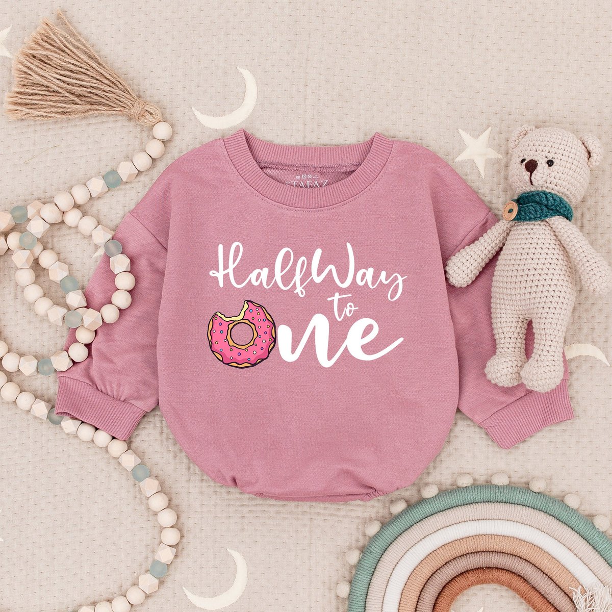 Half Way To One Donut Birthday Romper Pink Donut Birthday Bodysuit 12 Way To One Birthday Outfit 12