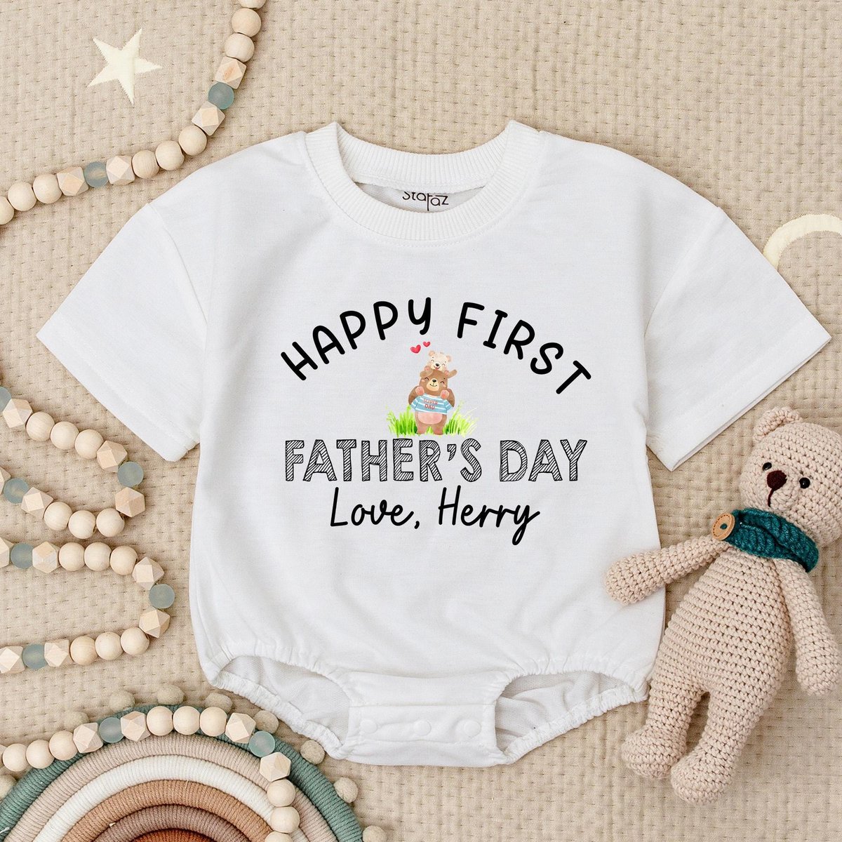 Happy First Fathers Day Baby Romper Personalized First Fathers Day Natural Bodysuit Fathers Day Name