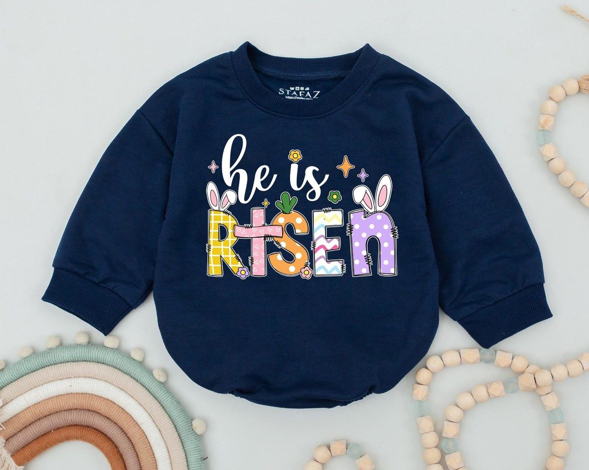 He Is Risen Baby Romper Christian religious 1st Easter Day Baby Outfit Christian Easter Baby Bodysui