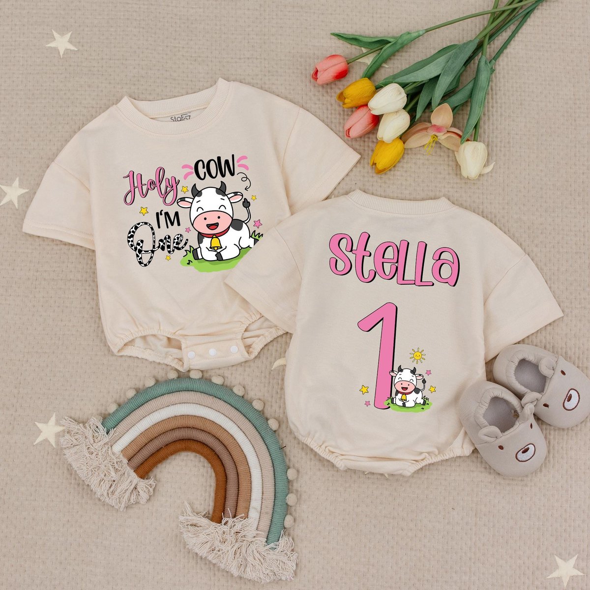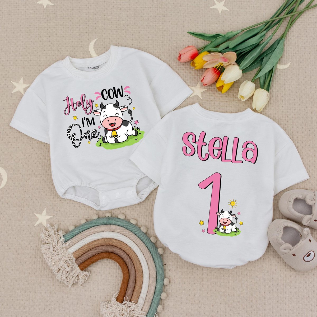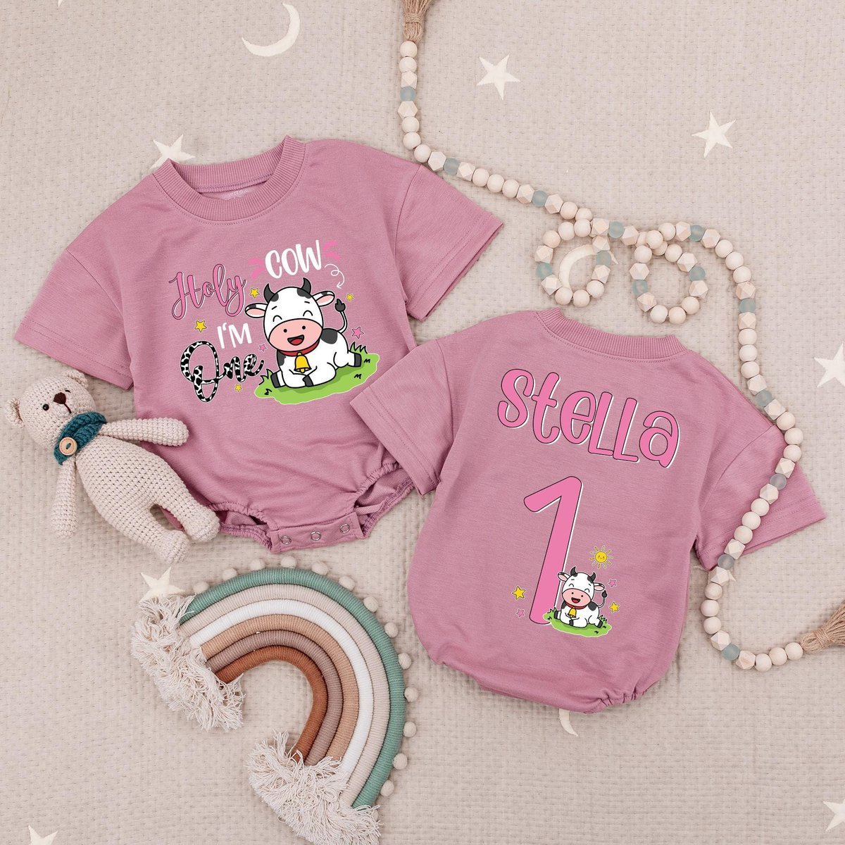 Holy Cow I’m One Birthday Baby Romper 1st Birthday Farm Animal Baby Romper Cow First Birthday Babys
