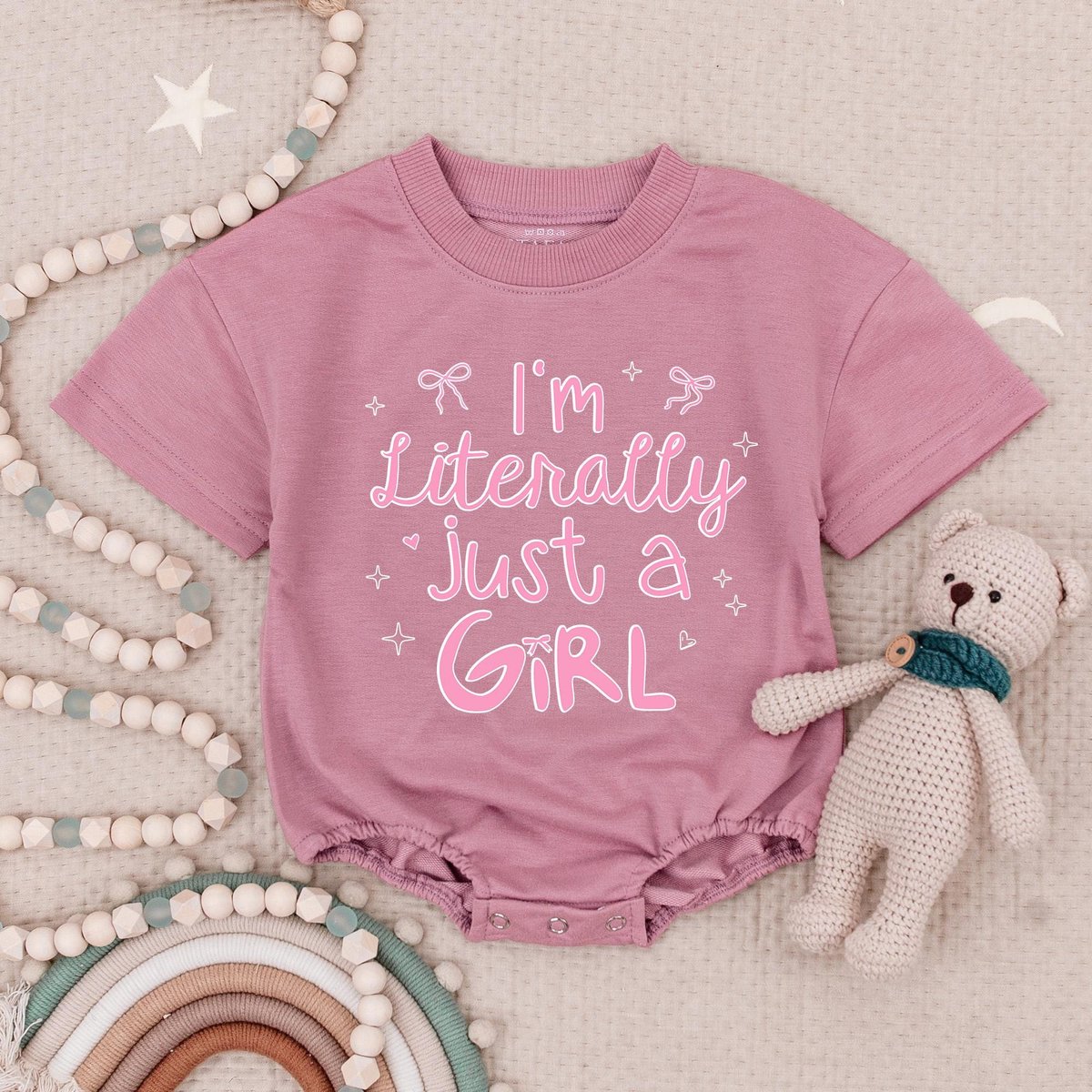 I’m Literally Just A Girl Romper Baby Bodysuit Baby Shower Gift Cute Bow Baby Girl Gender Reveal De