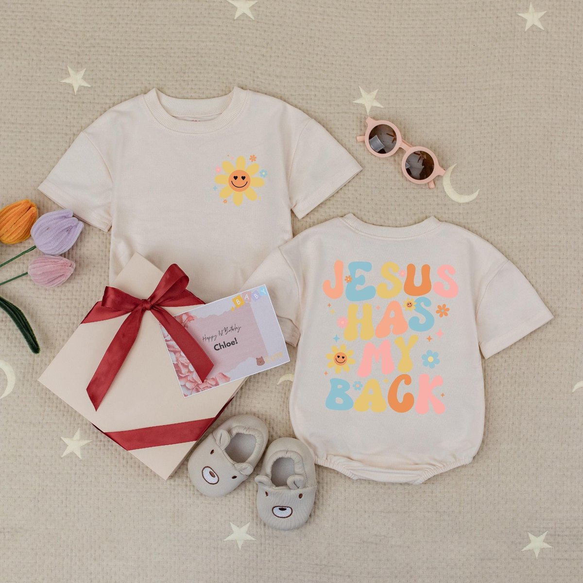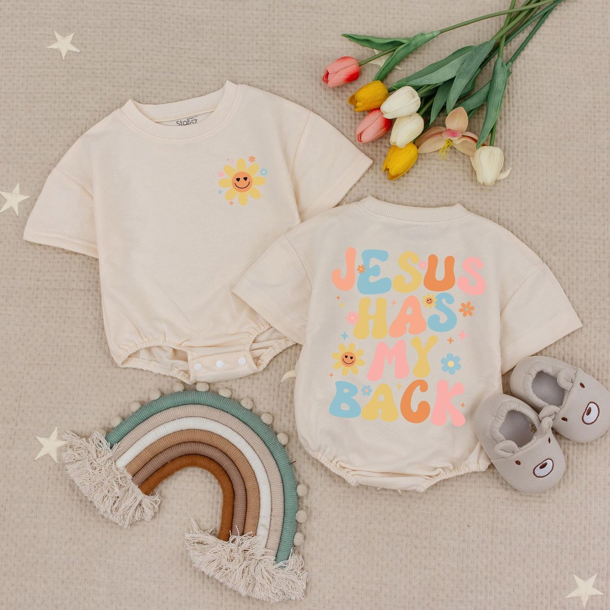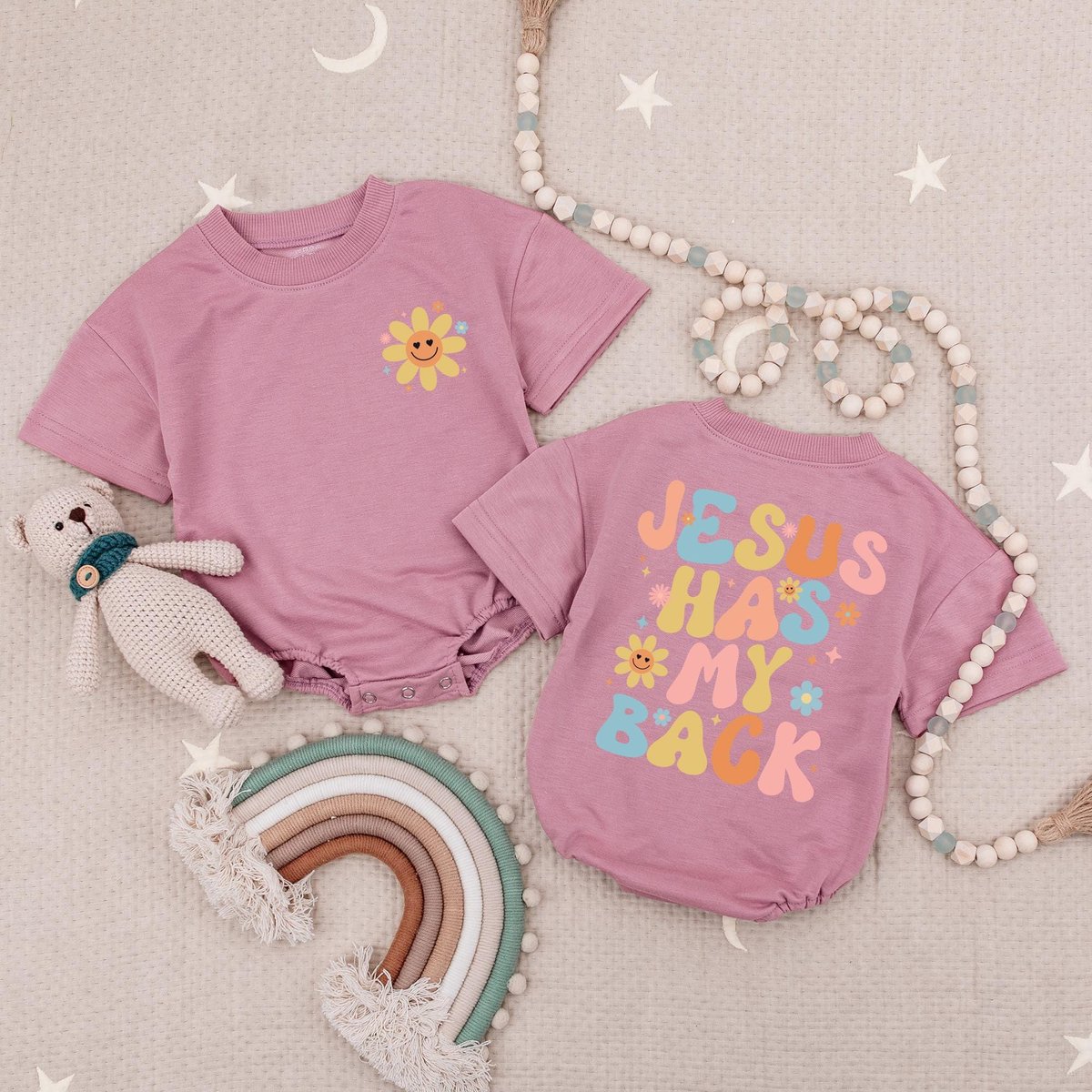 Jesus Has My Back Kids Baby Romper Retro Religious Boho Kid Gift Flower Church Babysuit Christian Gr