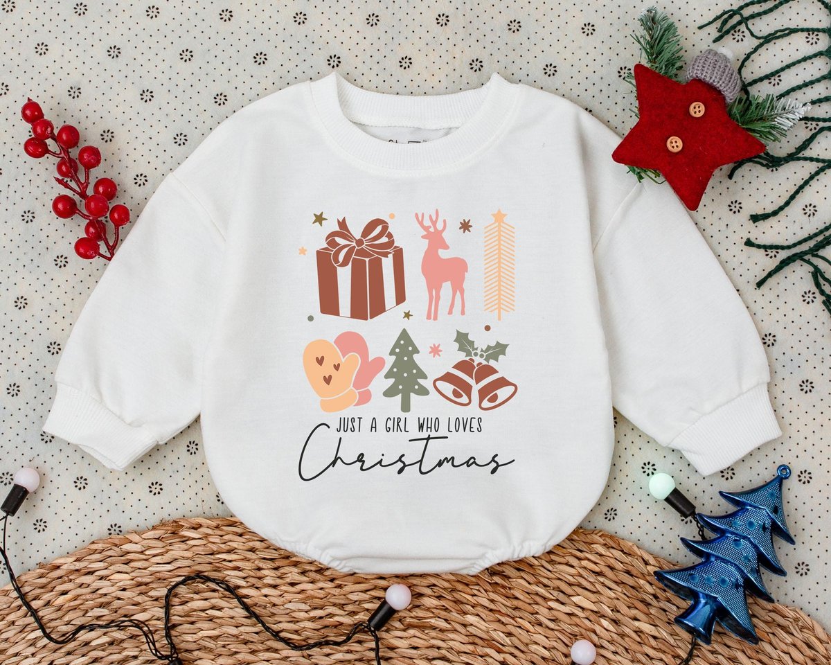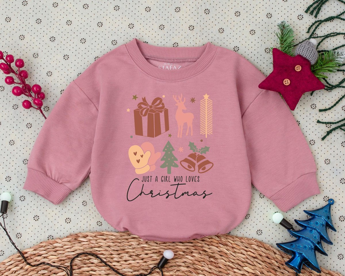 Just a Girl Who Loves Christmas Romper First Christmas Infant Clothes Toddler Sweatshirt Baby Shower