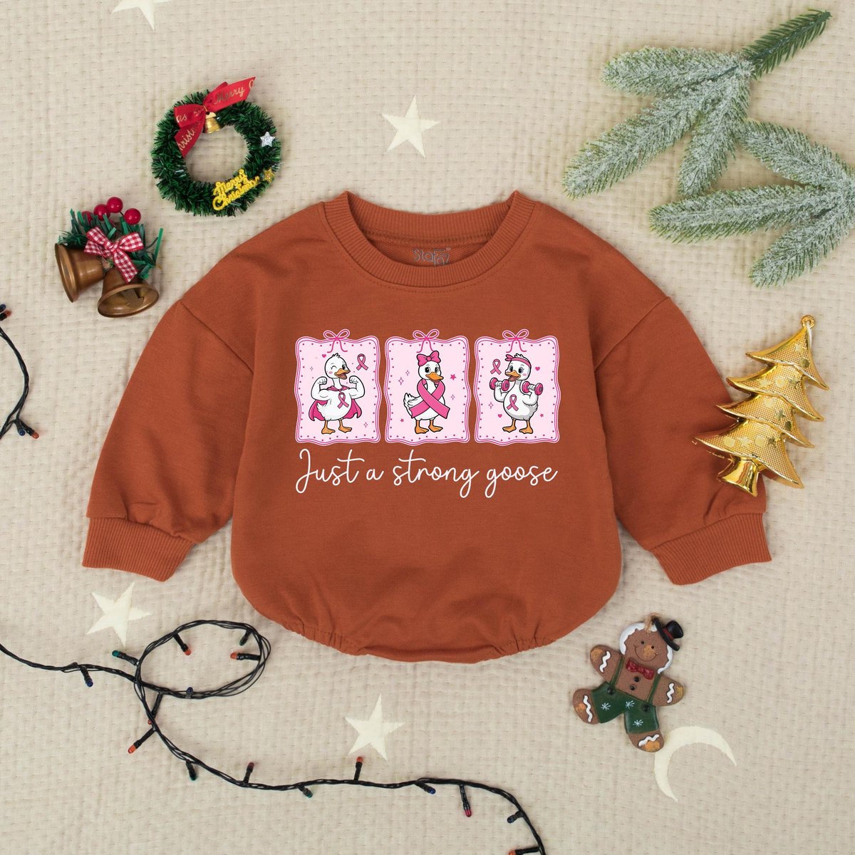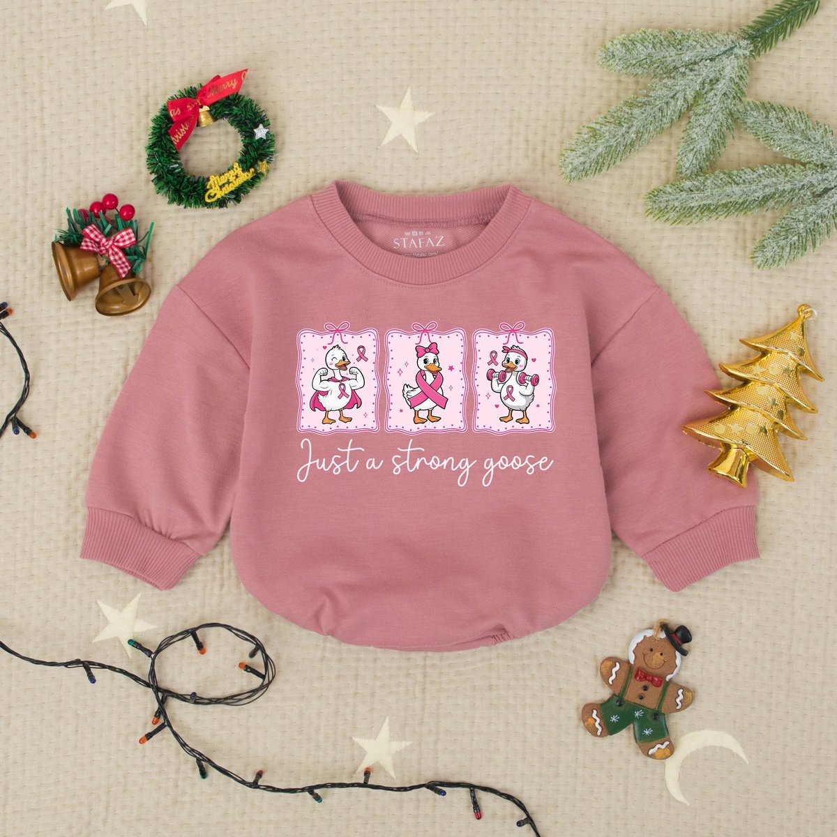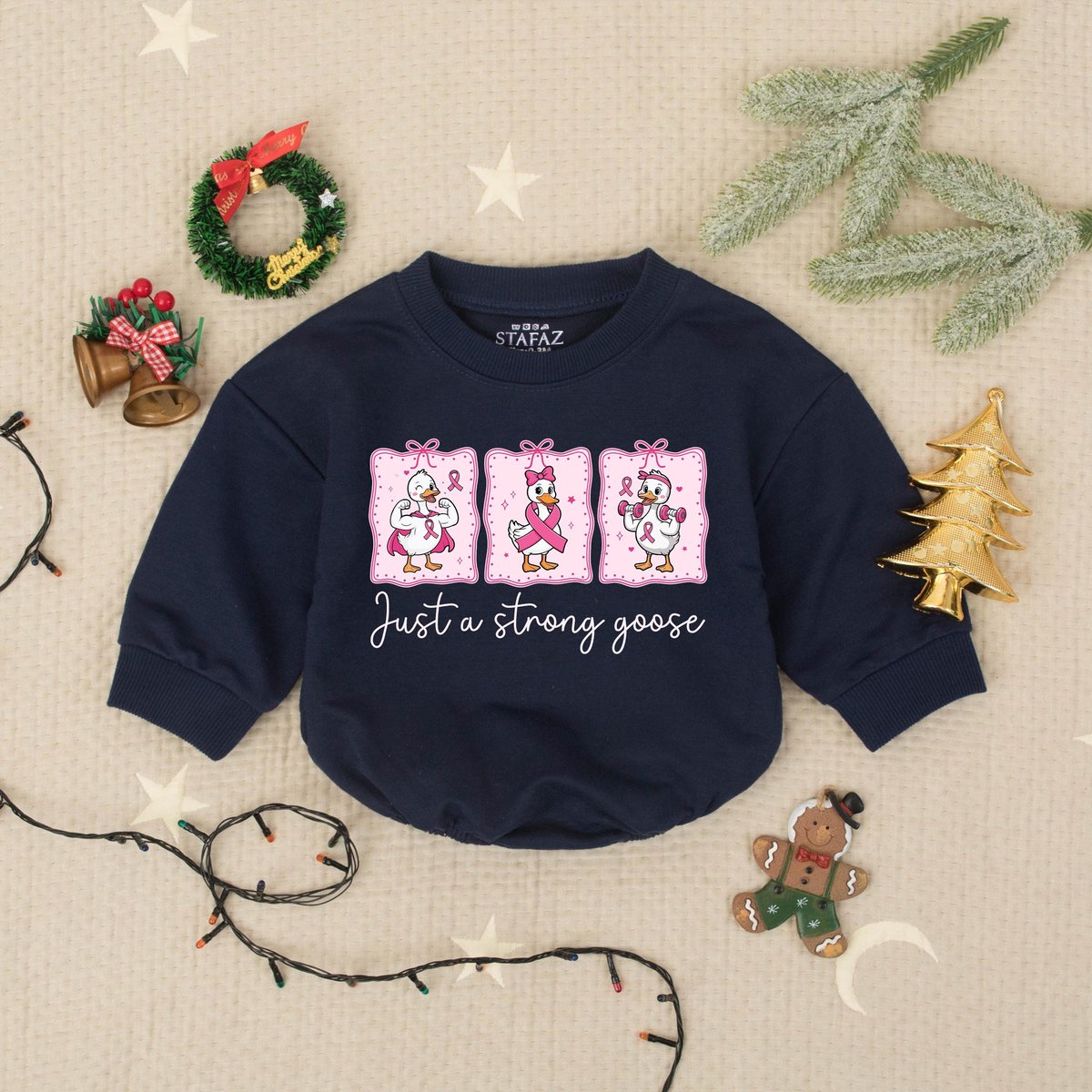 Just a Strong Goose Pink Ribbon Goose Bubble Romper Breast Cancer Awareness Baby Romper Cute Baby Su