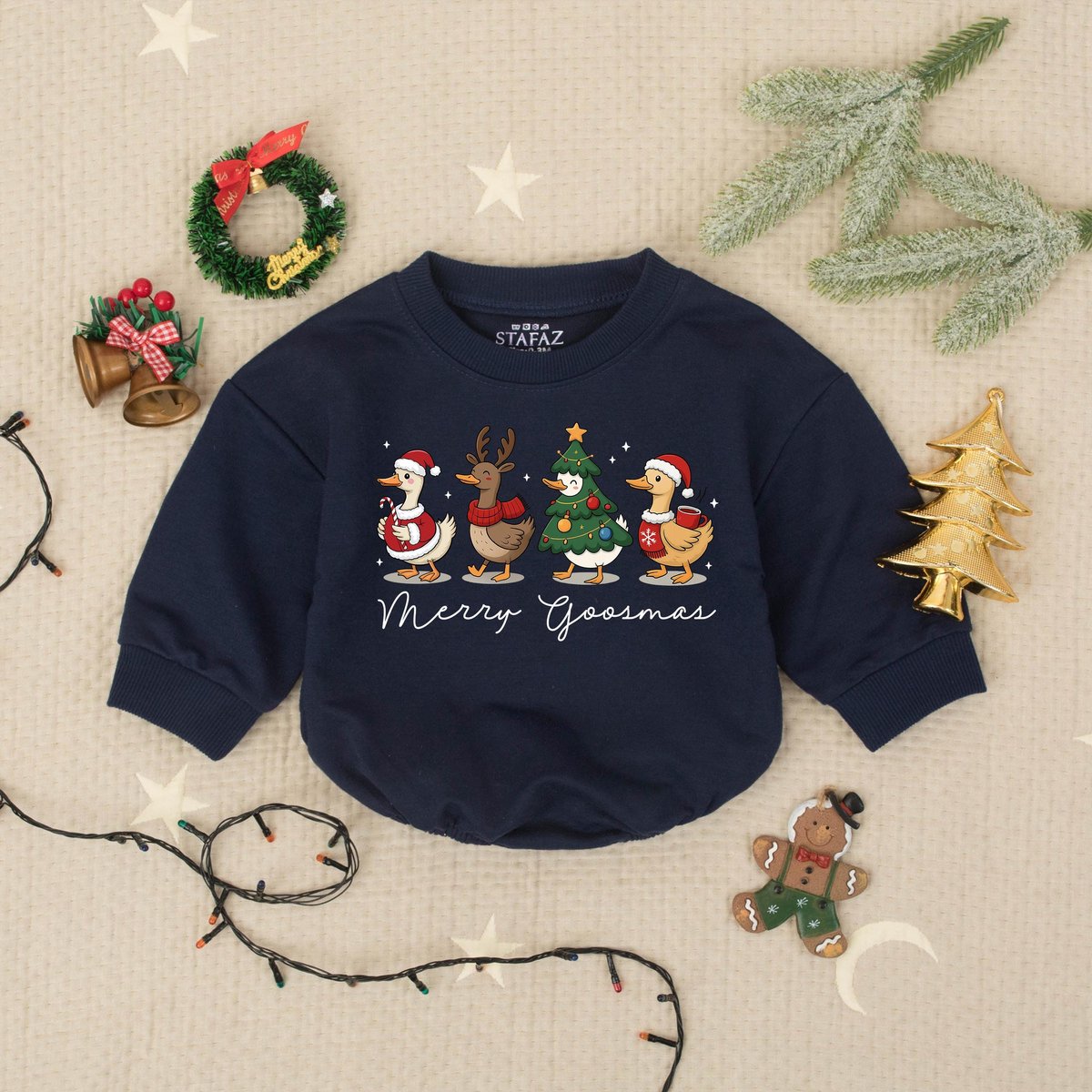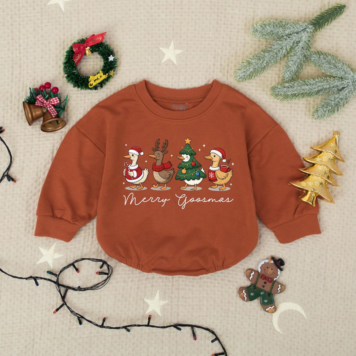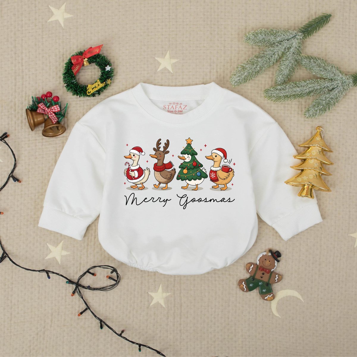 Merry Goosmas Bubble Romper Silly Goose Christmas Bodysuit Funny Holiday Baby Outfit Xmas Baby Showe