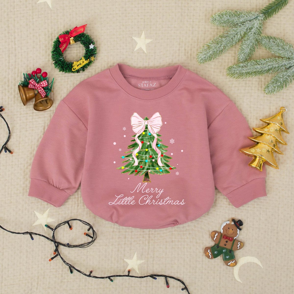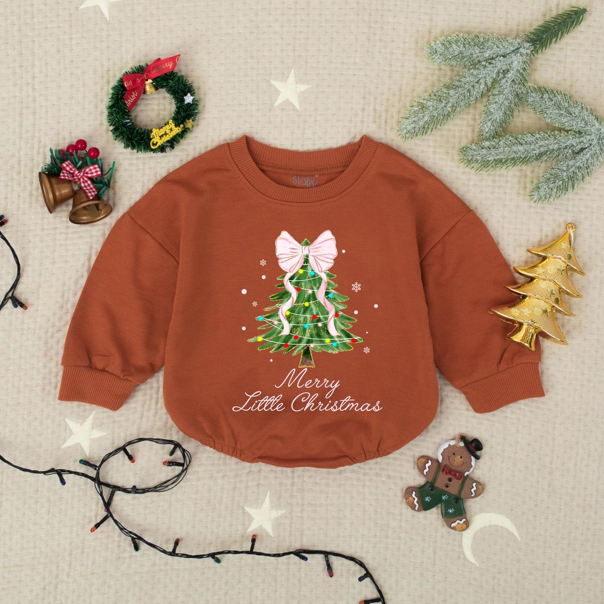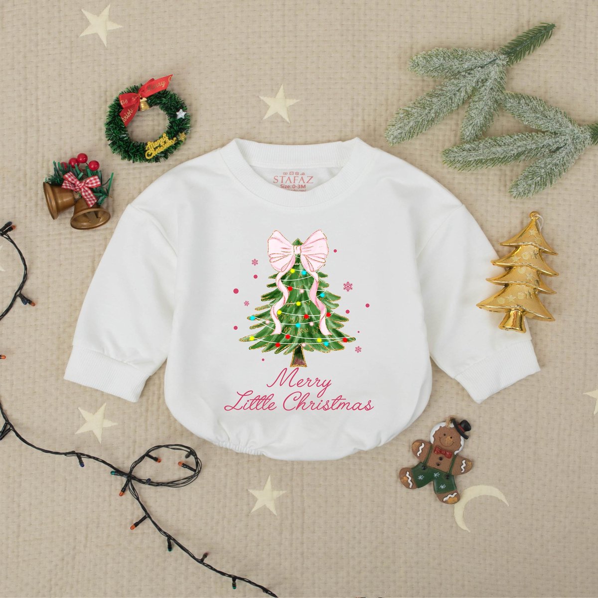 Merry Little Christmas Babysuit Christmas Tree Baby Romper Cute Holiday Infant Outfit Newborn Xmas B