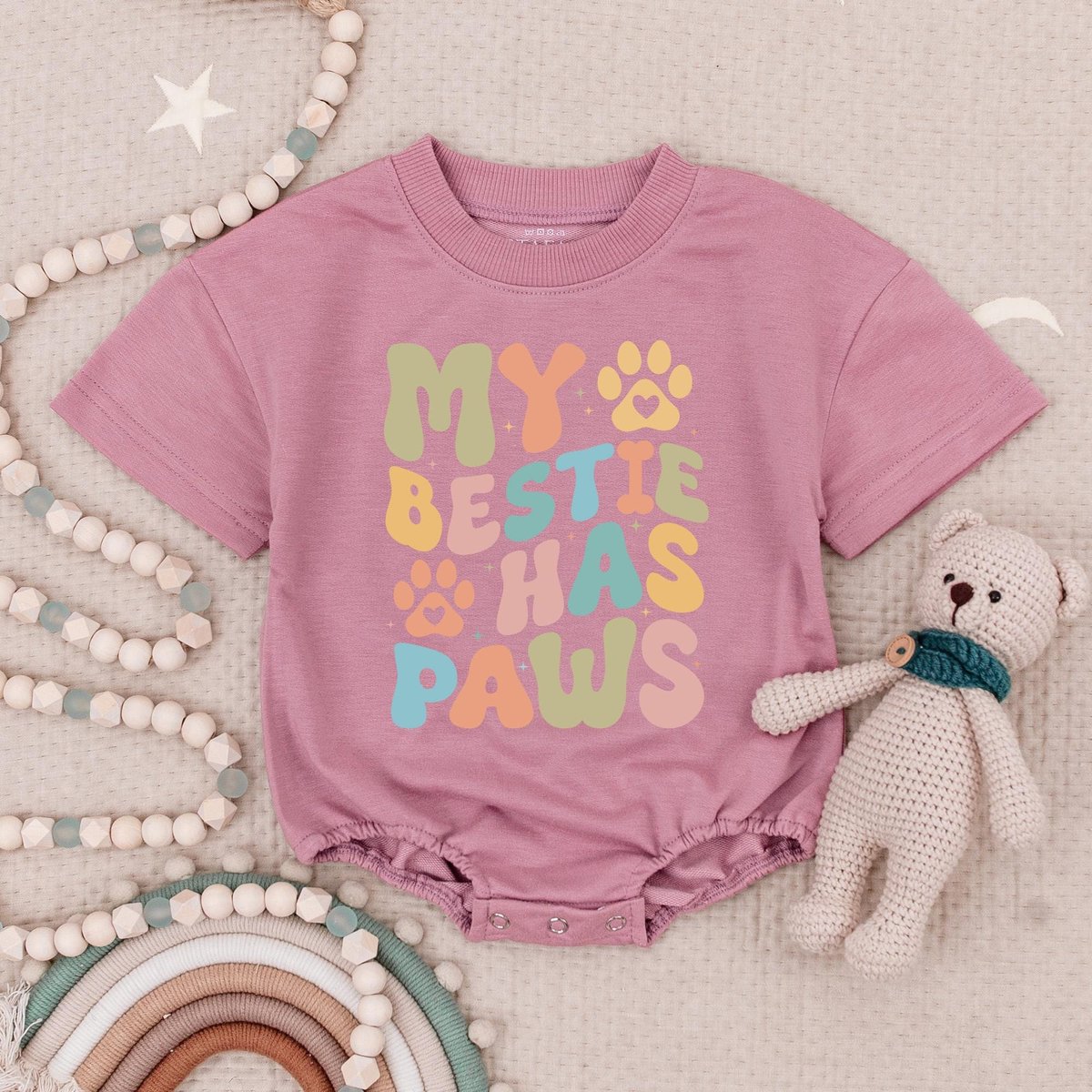 My Bestie Has Paws Baby Romper Pet Lover Baby Bodysuit Retro Pet Bestie Babysuit Dog Bestie Babysuit