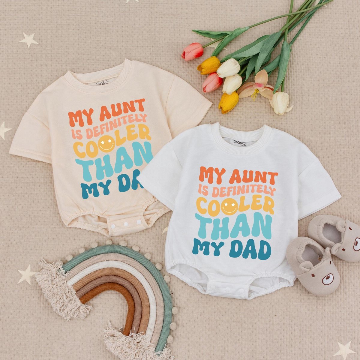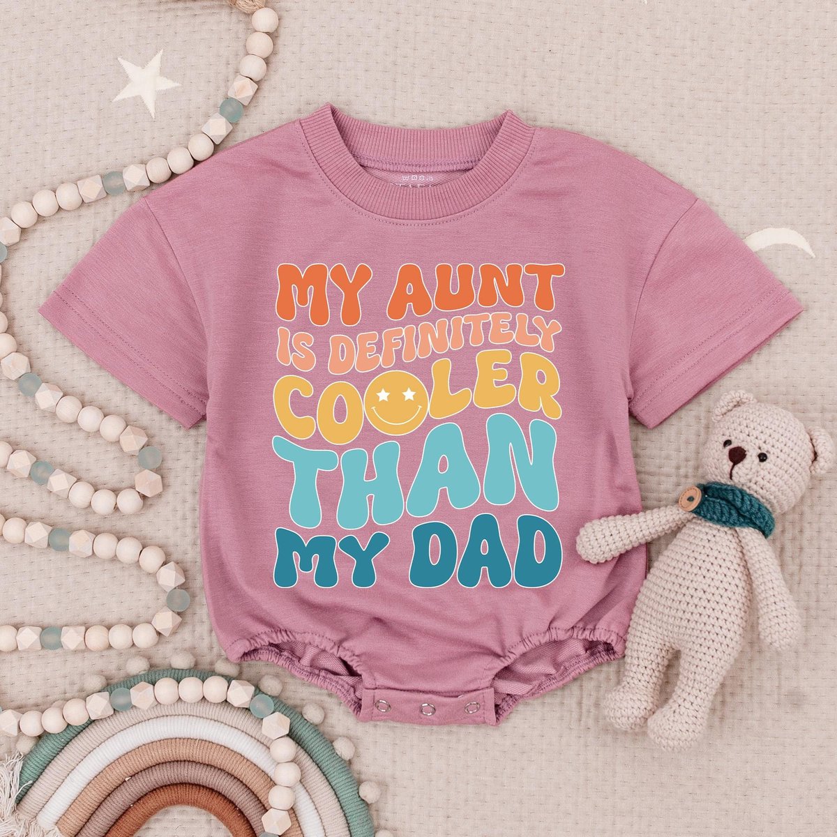 My Aunt Is Cooler Than My Dad Baby Romper Funny Vintage Bodysuit Cute Family Babysuit Funny Auntie A