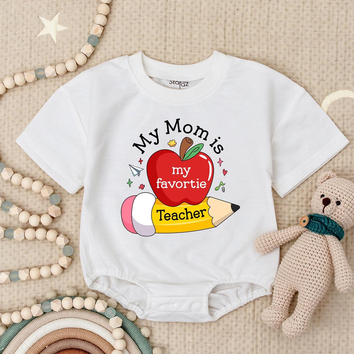 My Mom Is My Favorite Teacher Baby Romper Old School Baby Bodysuit Teacher Mom Baby Romper Teacher B