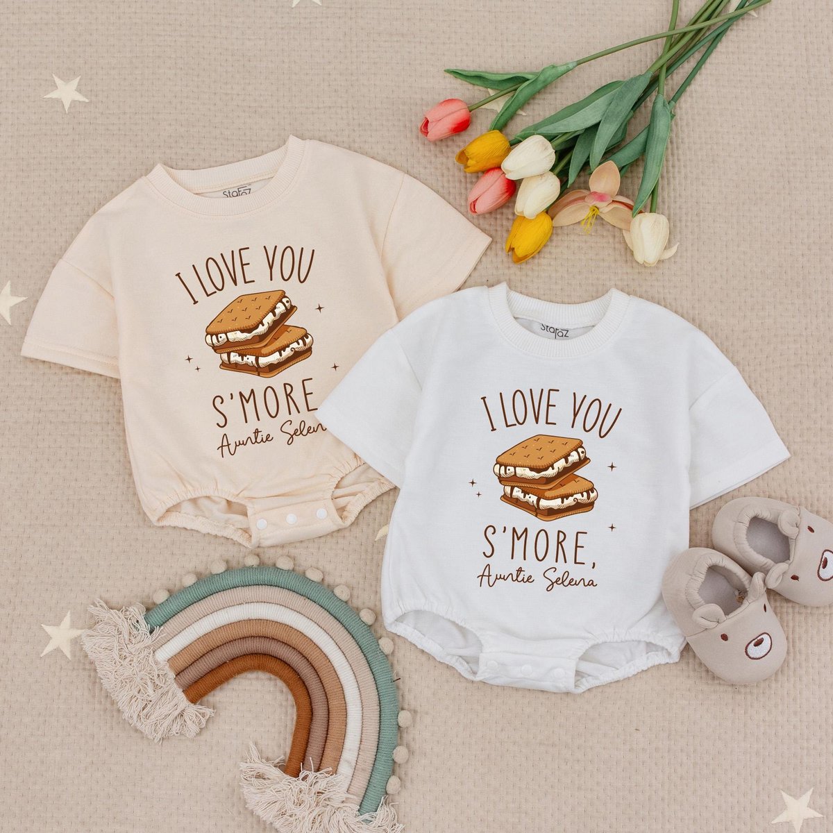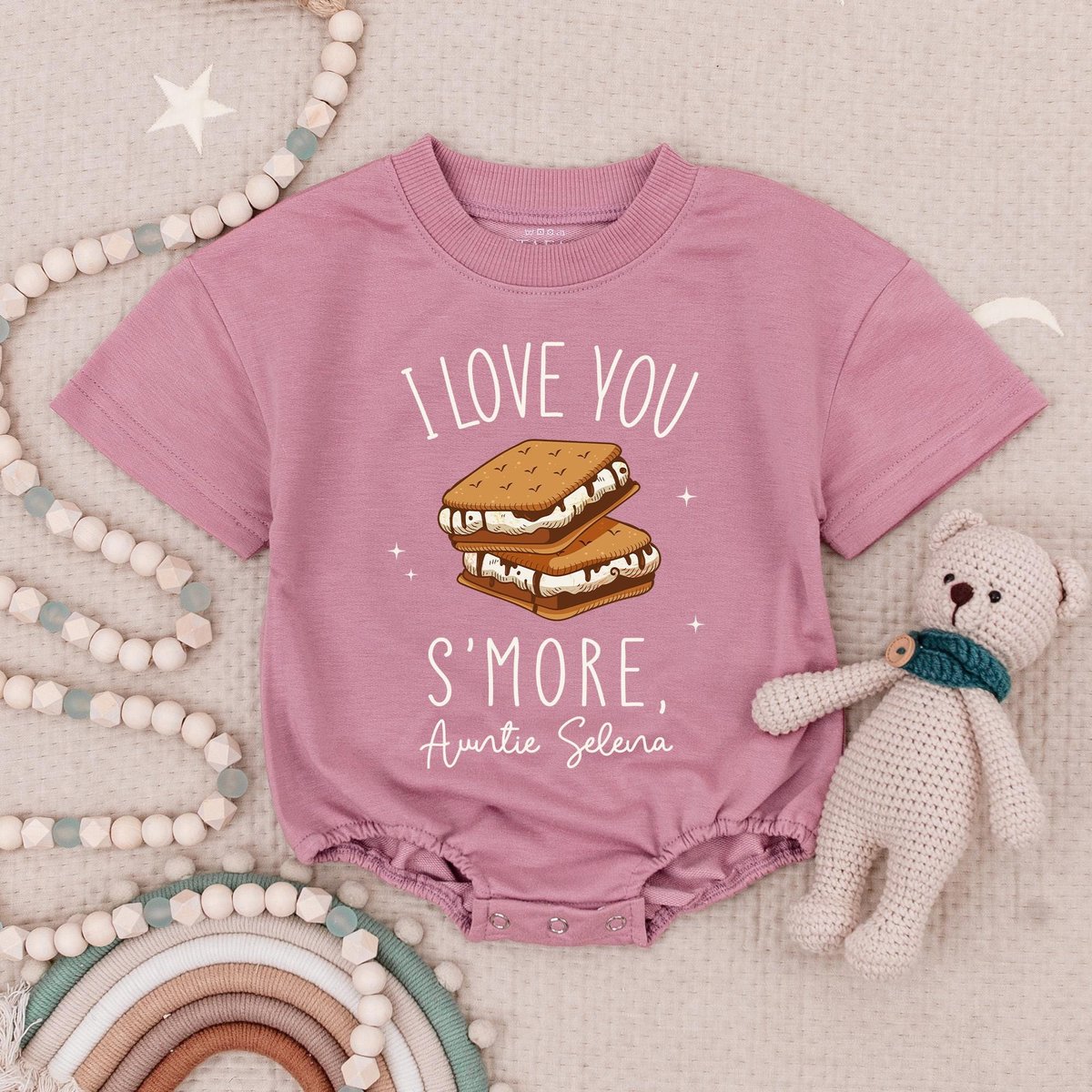 Personalized I Love You S’more Auntie Baby Romper Custom Aunt Baby Babysuit Funny Aunt Name Baby Cl