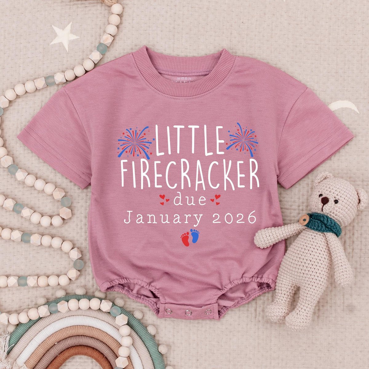 Personalized Little Firecracker 4th of July Pregnancy Announcement Baby Romper Baby Announcement Due