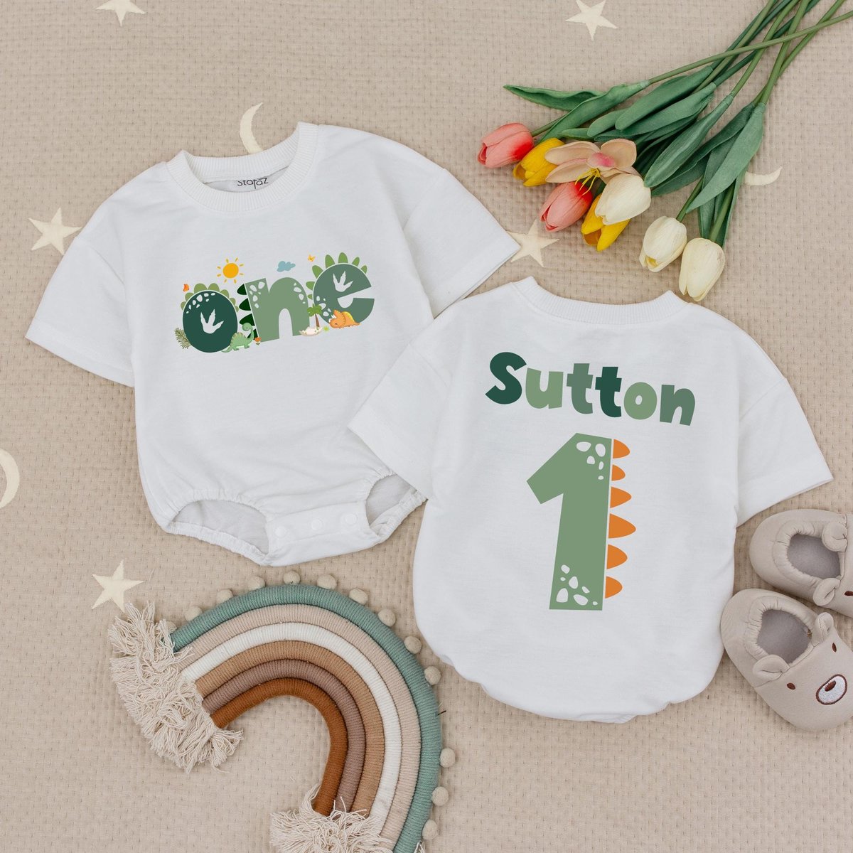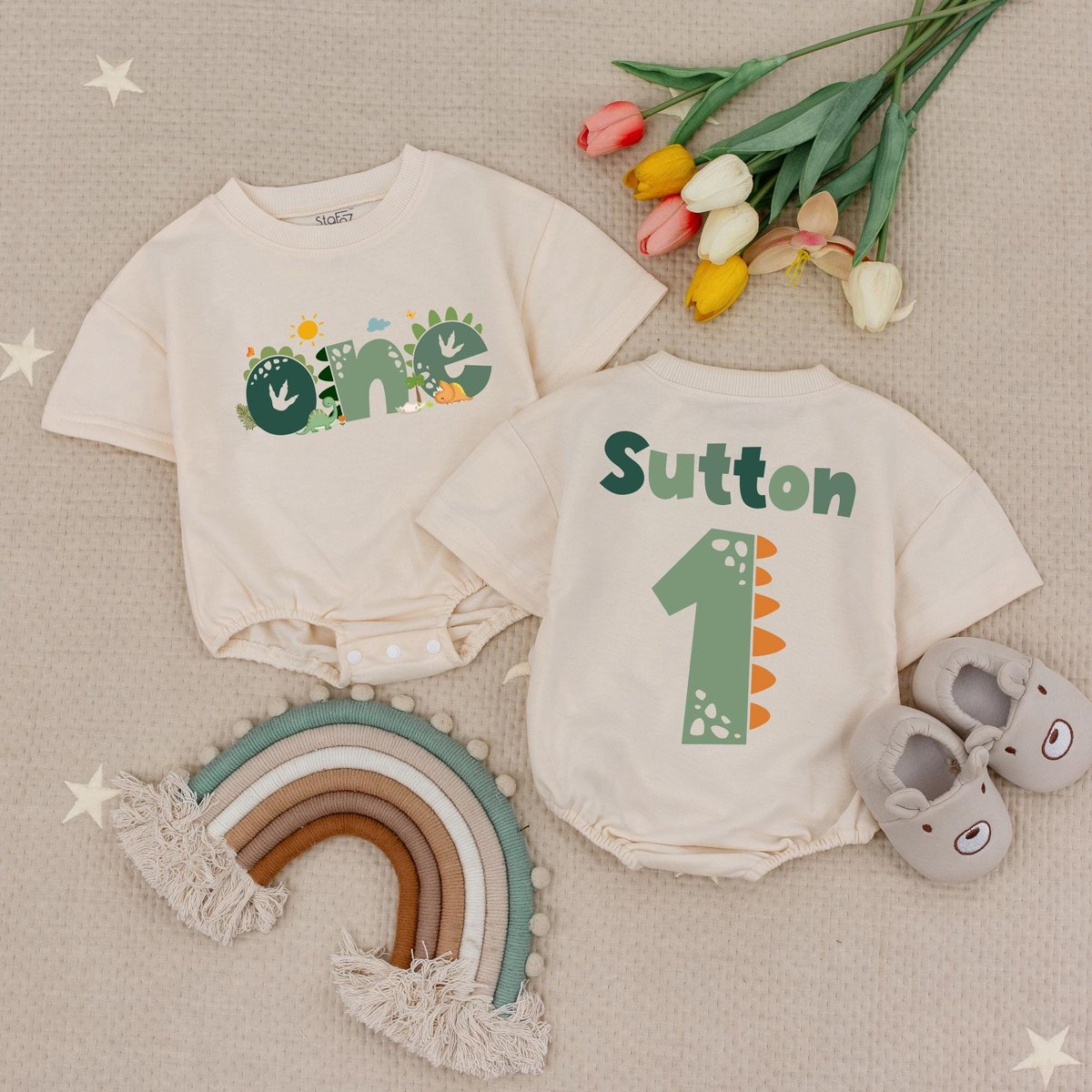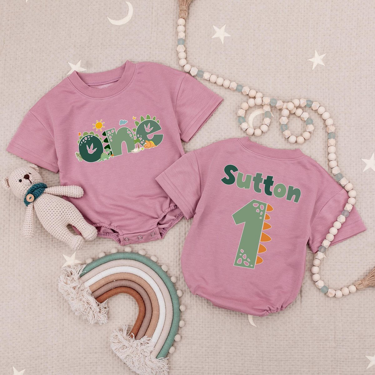 Personalized Name and Age Dinosaur Birthday Baby Romper Dinosaur Birthday Babysuit Dinosaur 1st Birt