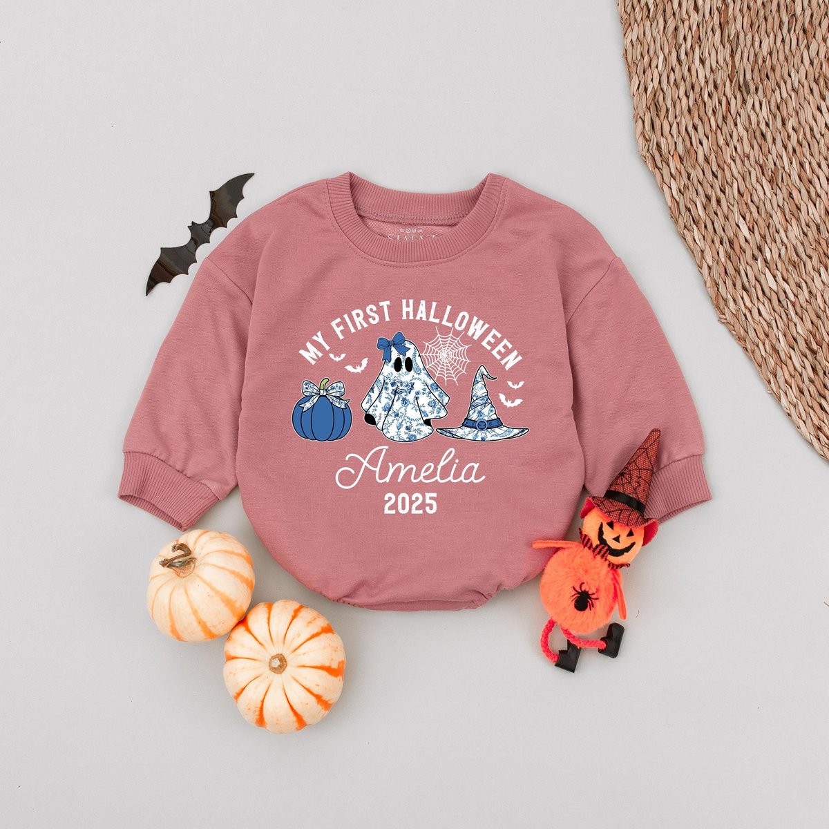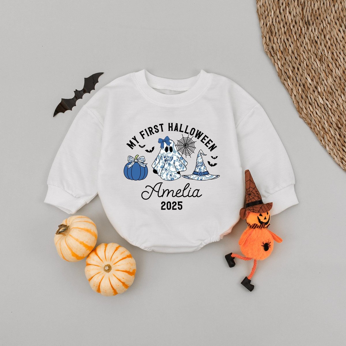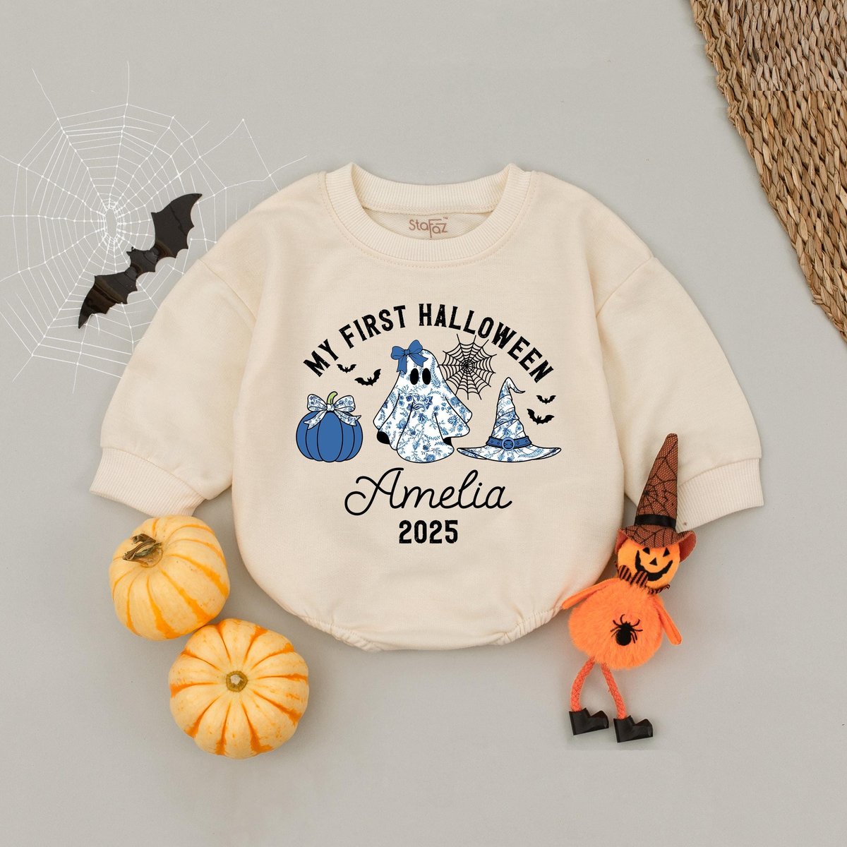 Personalized My First Halloween Baby Romper Spooky Boo Baby Bodysuit First Halloween Baby Outfit Cut