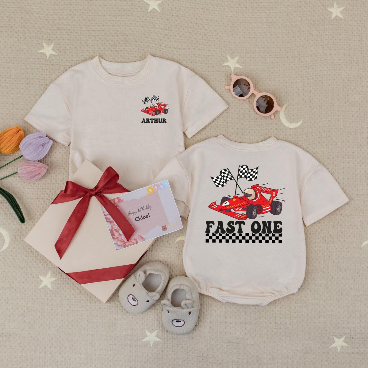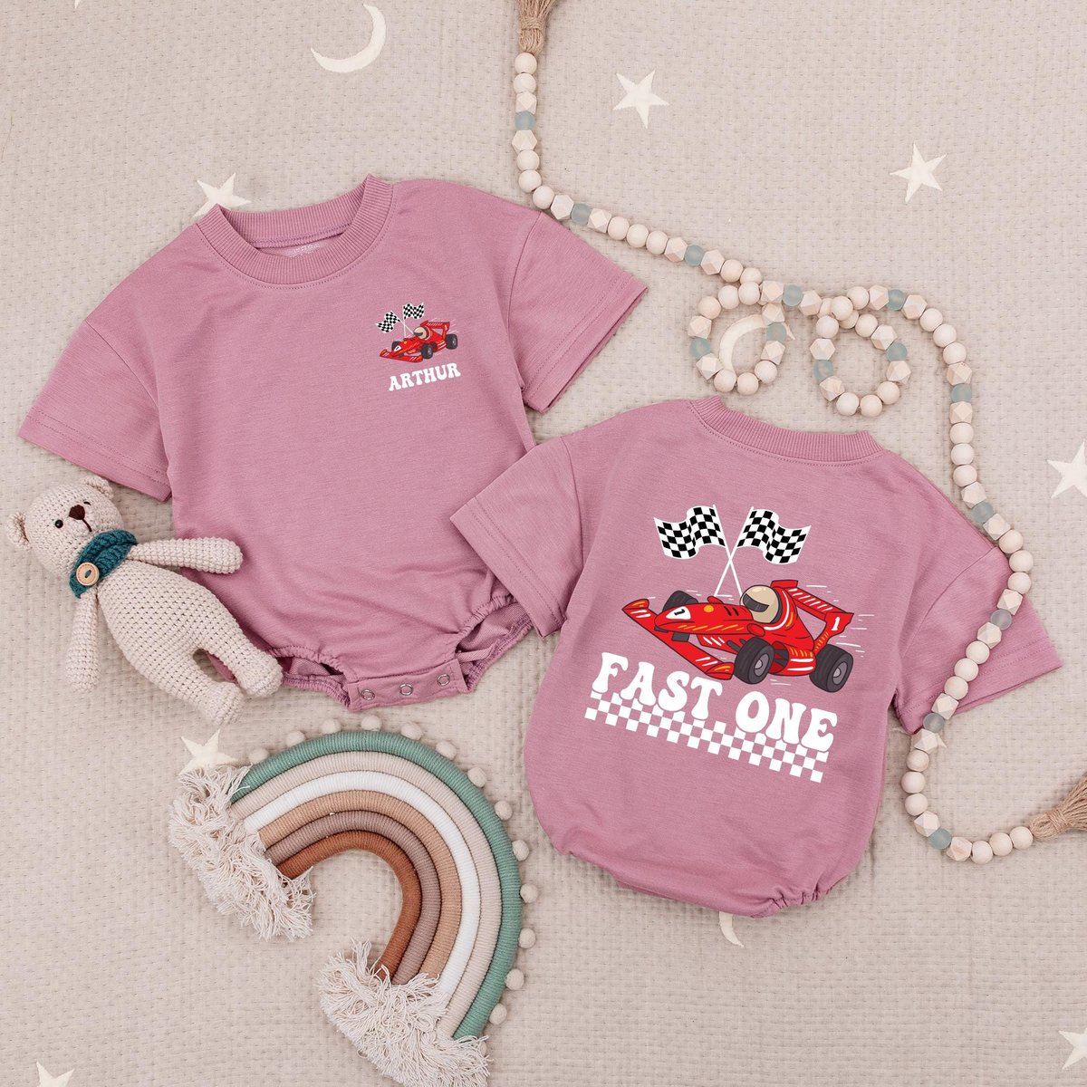 Personalized Name and Age Fast One Baby Romper Fast One Crew Babysuit Boy Racecar Babysuit Racecar B
