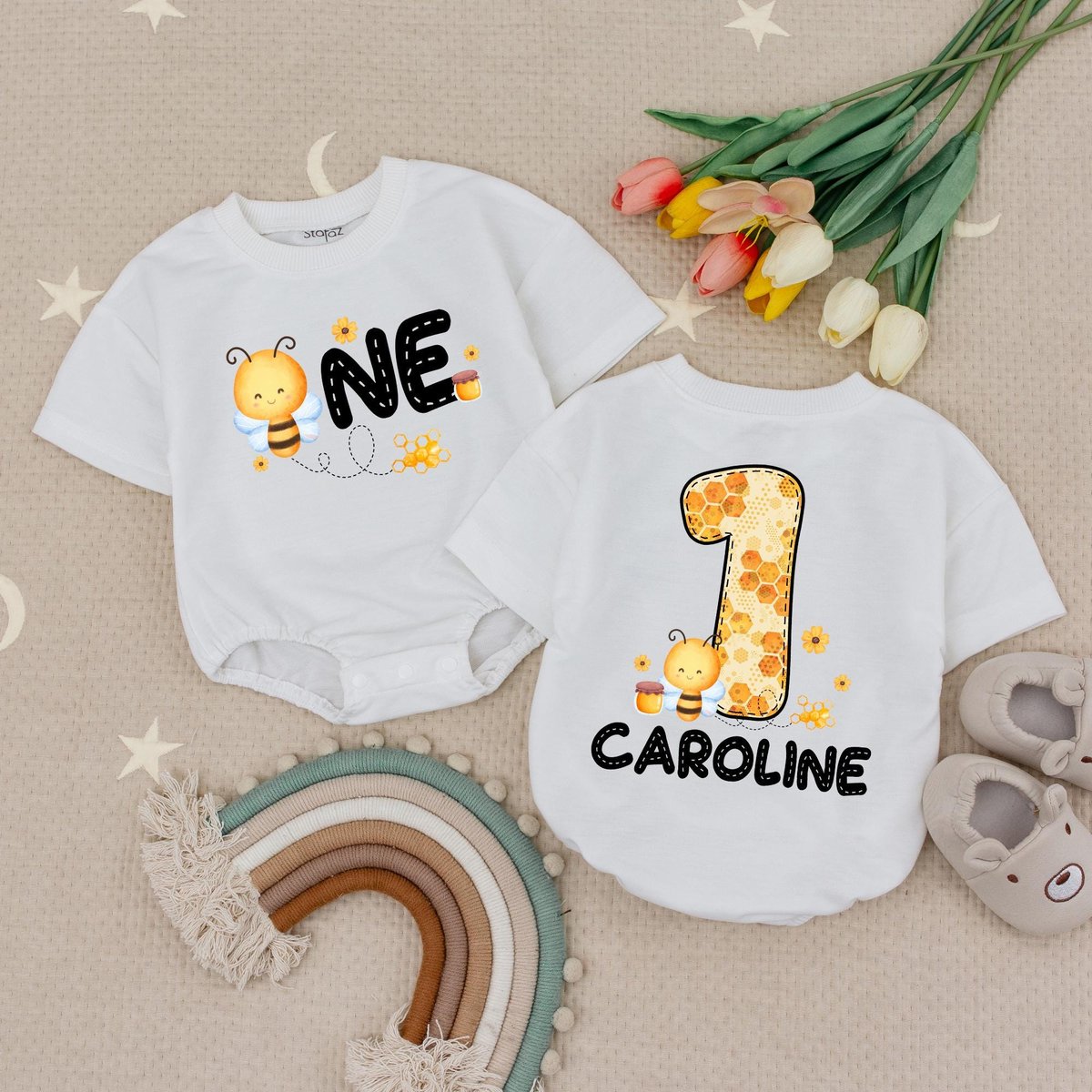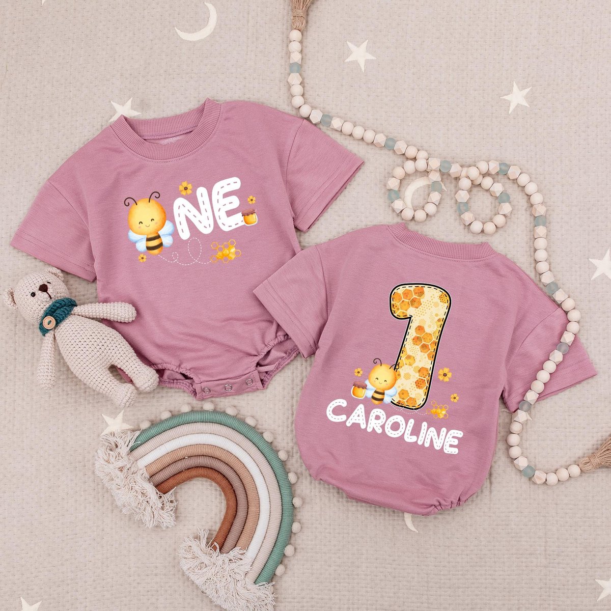 Personalized Name Bee Birthday Baby Romper First Birthday Baby Outfit Bee 1st Birthday Outfit Bee Lo