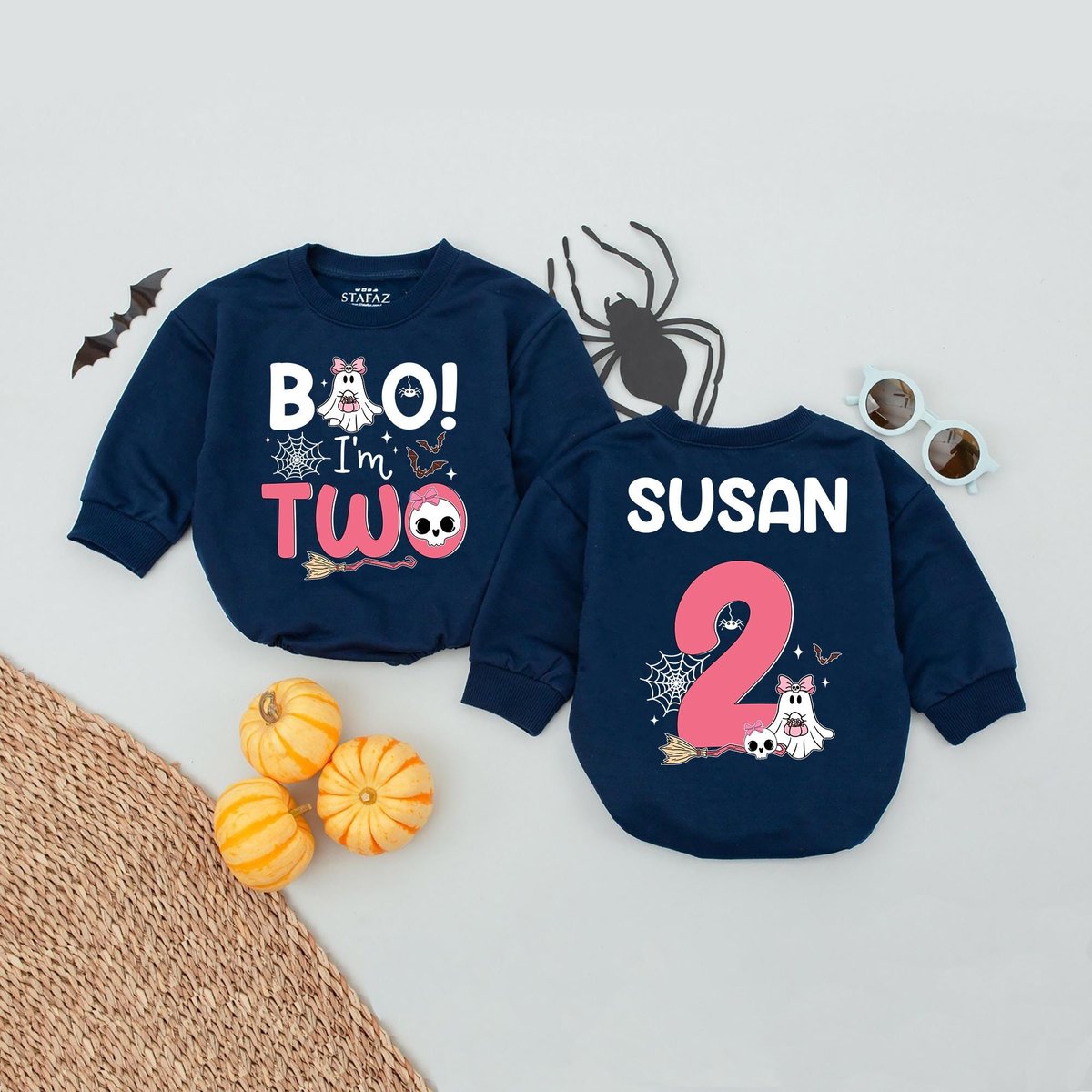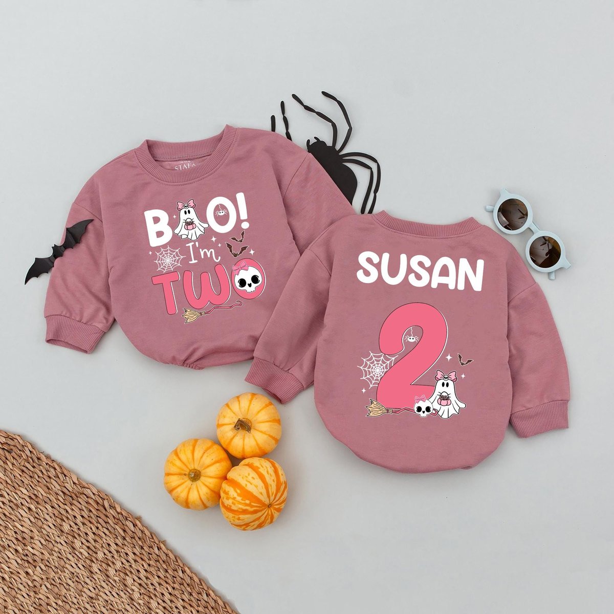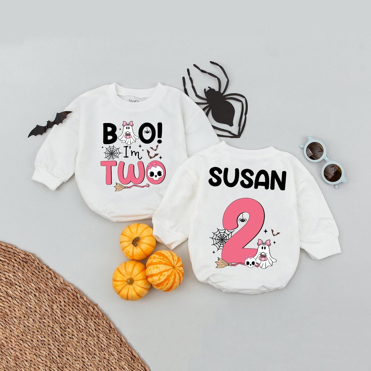 Personalized Name Boo I’m Two Birthday Baby Romper 2nd Birthday Girl Outfit Spooky Season Kids Baby