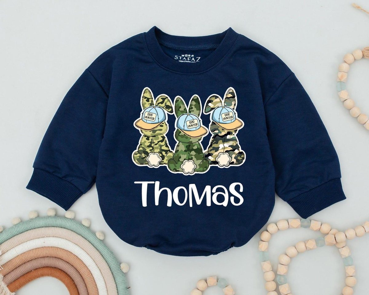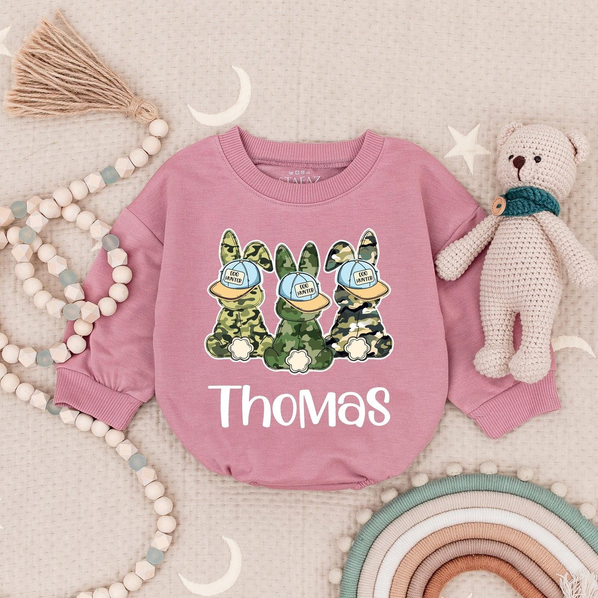 Personalized Name Boy Easter Camo Baby Bodysuit Egg Hunter Bunny Baby Romper Baby Boy Easter Boy Eas